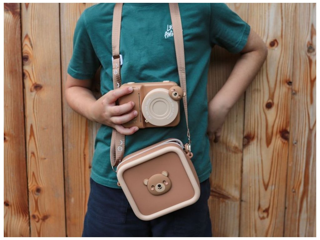 Silikónové puzdro na fotoaparát s medvedíkom Tvarované silikónové puzdro v hnedej farbe je ako stvorené pre fotoaparát vášho malého lovca snímok. Vďaka pružnému materiálu poskytuje spoľahlivú ochranu pred poškodením najmä počas cestovania. Zabraňuje poškriabaniu, zmierňuje ľahké nárazy a chráni fotoaparát pred prachom aj vlhkosťou. Navyše sa jednoducho čistí, stačí utrieť handričkou. Praktický popruh zaistí pohodlné nosenie, nech už sa vyberiete kamkoľvek. Silikónový obal vhodne doplní Detský fotoaparát s tlačou Medveď - hnedý. Technické parametre: Obsah balenia: 1x silikónové puzdro, 1x popruh. Rozmer: 13 x 14 x 6 cm (výška x šírka x dĺžka). Rozmer balenia: 6 x 16 x 13,5 cm (výška x šírka x dĺžka). Hmotnosť: 158 g. Hmotnosť balenia: 170 g. Materiál: silikón. Farba: hnedá. Certifikáty: CE. Čistenie: Nečistoty utrite bavlnenou handričkou. Odporúčaný vek: Od 4 rokov.Dodatočné parametre