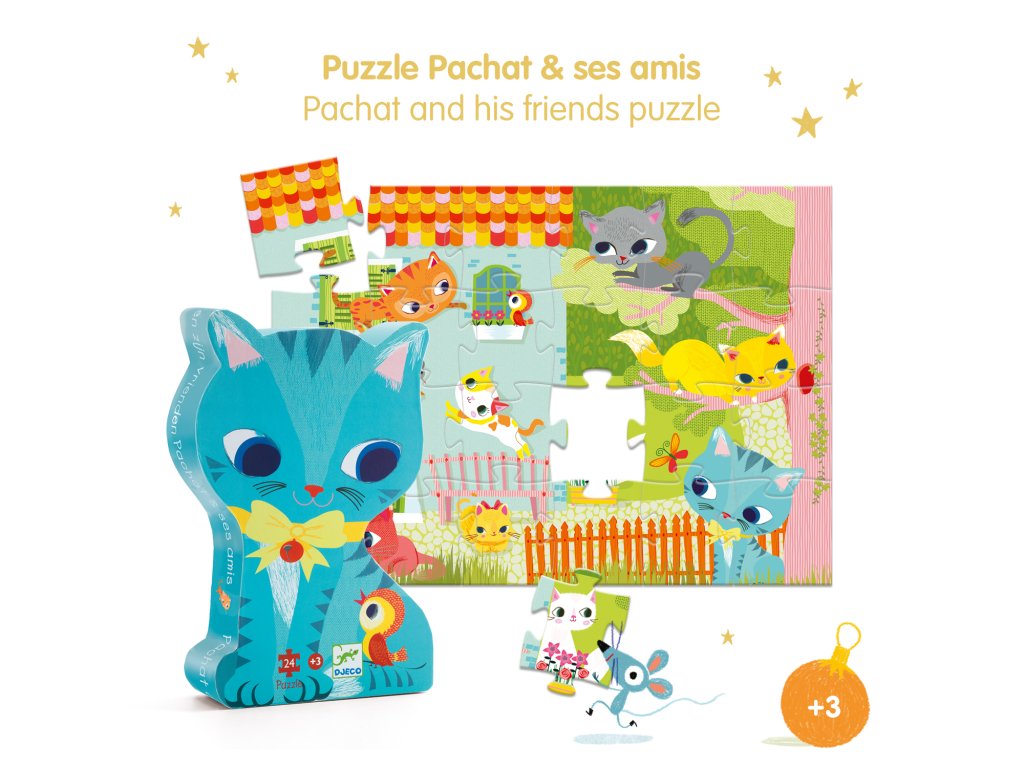 Siluetové puzzle: MačičkaFarebné puzzle s mačacím motívom pre malé detiSiluetové puzzle – Mačička je krásne kartónové puzzle s 24 dielikmi, určené pre malé deti. Po poskladaní vznikne veselý obrázok mačičky v jemných farbách. Puzzle je uložené v originálnej siluetovej škatuľke v tvare mačičky, ktorá slúži aj ako pekná dekorácia v detskej izbe.Prečo si vybrať puzzle od Djecovhodné pre deti od 3 rokov24 veľkých dielikov, ľahkých na uchopenieroztomilý mačací motívrozvíja trpezlivosť, sústredenie a logické mysleniekrásna siluetová krabička – ideálna ako darčekObsah balenia24 kartónových dielikov puzzleDodatočné parametre