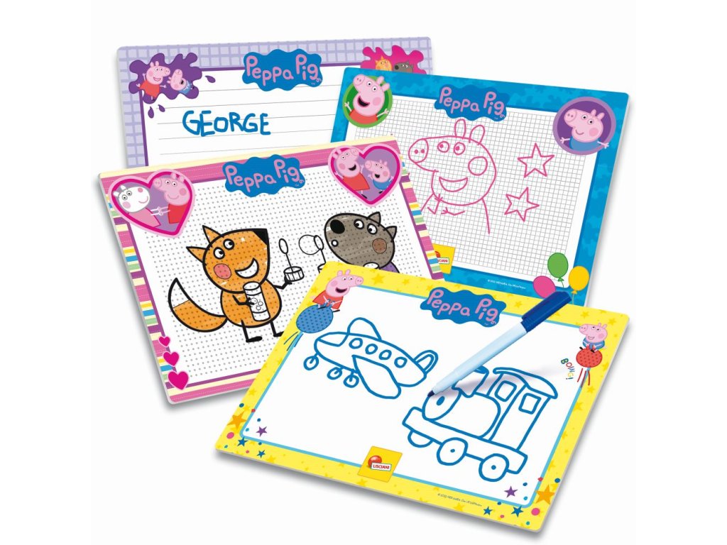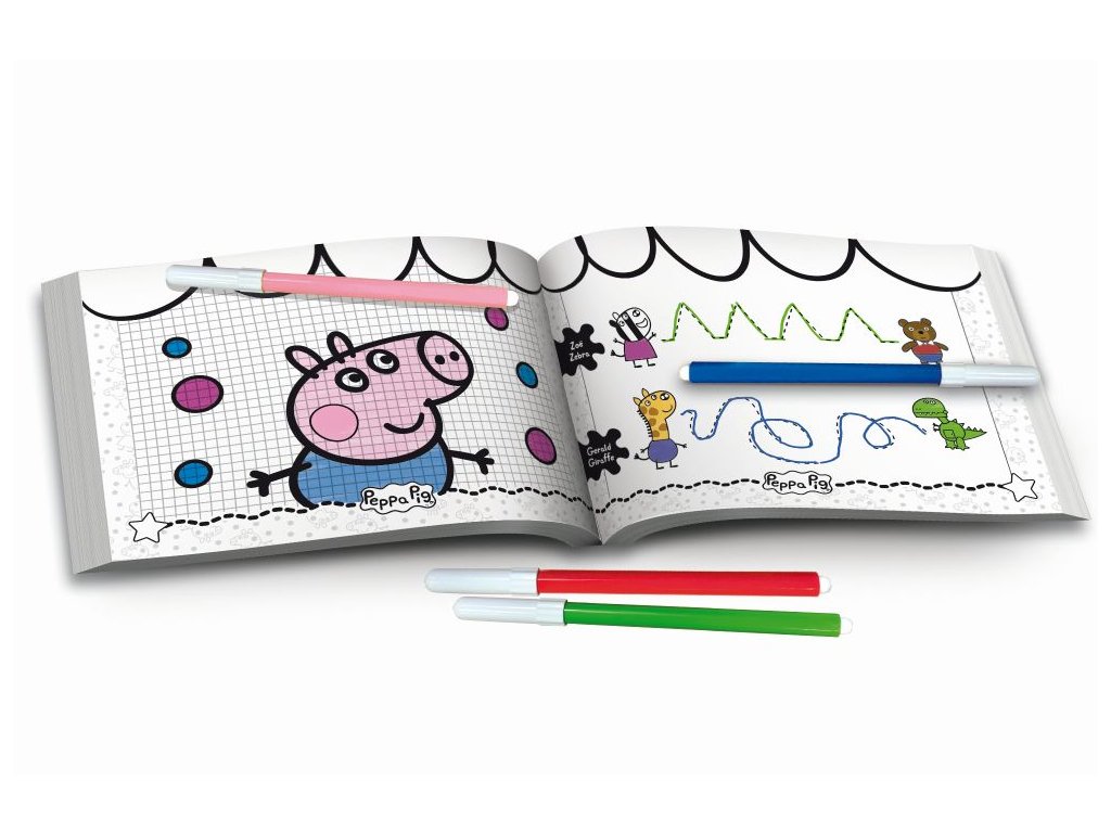 Naučte sa kresliť s prasiatkom Peppou! Skutočná škola kreslenia, ktorá obsahuje 4 stierateľné dosky, fixy, zošit s množstvom kresieb, ktoré vám poslúžia ako návod, ako sa naučiť kresliť. Bohatá a zábavná sada pre rozvoj manuálnych zručností, kreativity a predstavivosti. Vhodné pre deti od 3 rokov.Dodatočné parametre