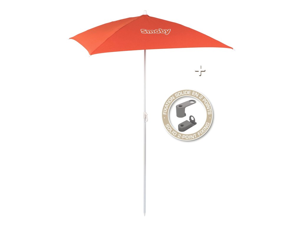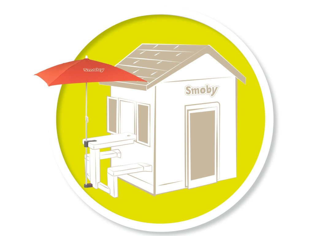 Slnečná clona prispôsobená piknikovým stolom Smoby. Ozdobí domčeky a ochrani detí pred slnkom. 2 bodový upevňovací systém umožňuje bezpečné a veľmi pevné pripevnenie. Rozmery slnečníka 80x90cm. Celková výška cca.1,50 m. Výška min. 1,05 / maxi 1,55.