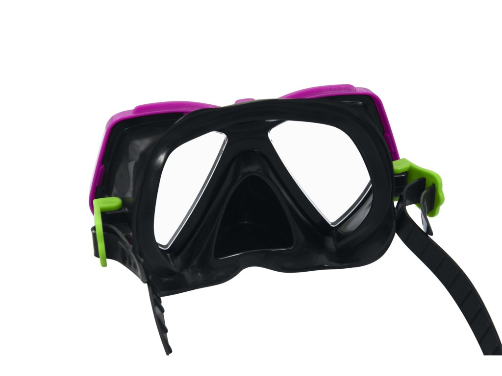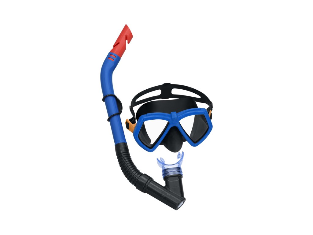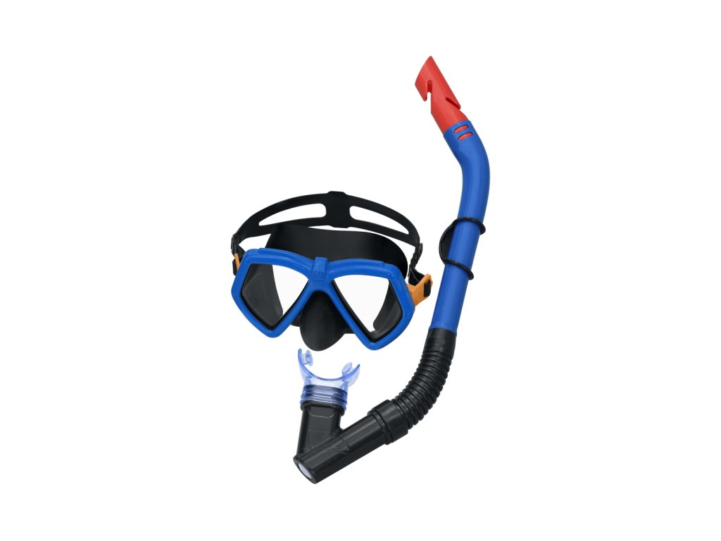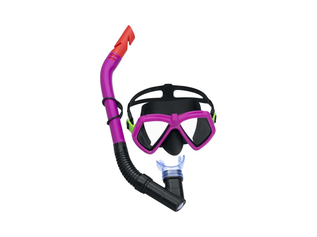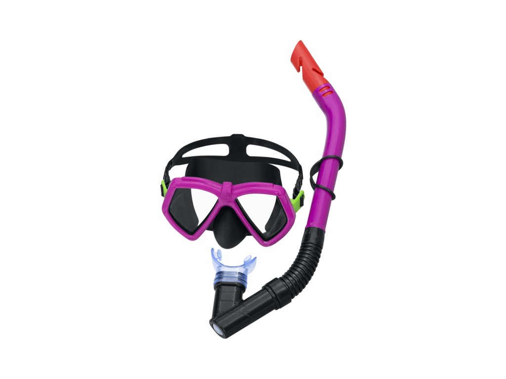 Bestway šnorchlovací set Dominator – brýle a šnorchl. Brýle mají polykarbonátové čočky ve tvaru leteckých brýlí s UV ochrannou vrstvou. Komfortní, dvojité těsnění lemu brání vnikání vody do brýlí. Plně nastavitelný dělený silikonový pásek. Šnorchl má měkký a pohodlně přiléhající náustek. Technologie Dry Top je speciální vylepšení šnorchlu, které zabraňuje průniku vody do úst. 100 % bez latexu. 2 barevné provedení (modrá, růžová). Věk: 7+Dodatočné parametre