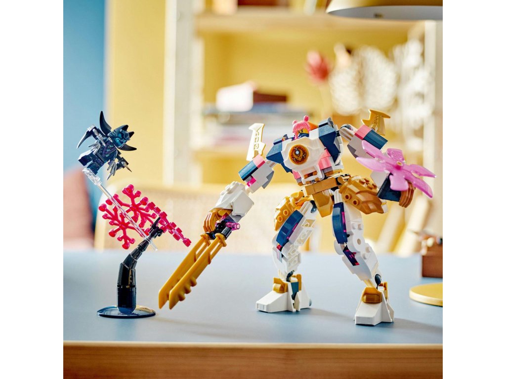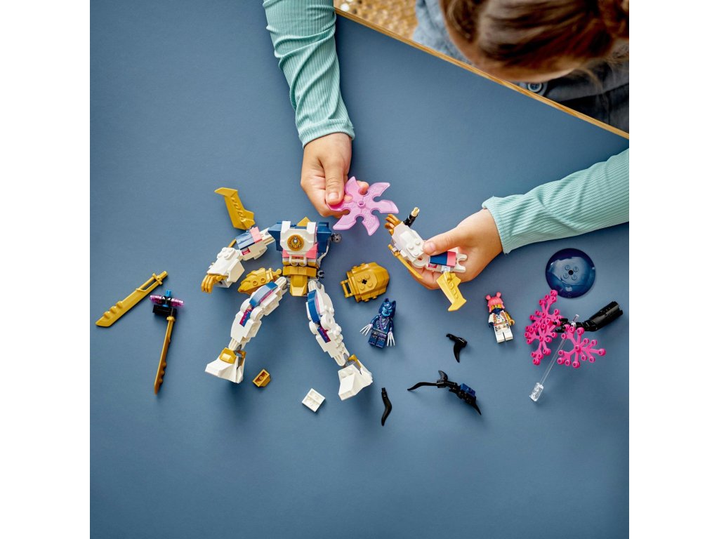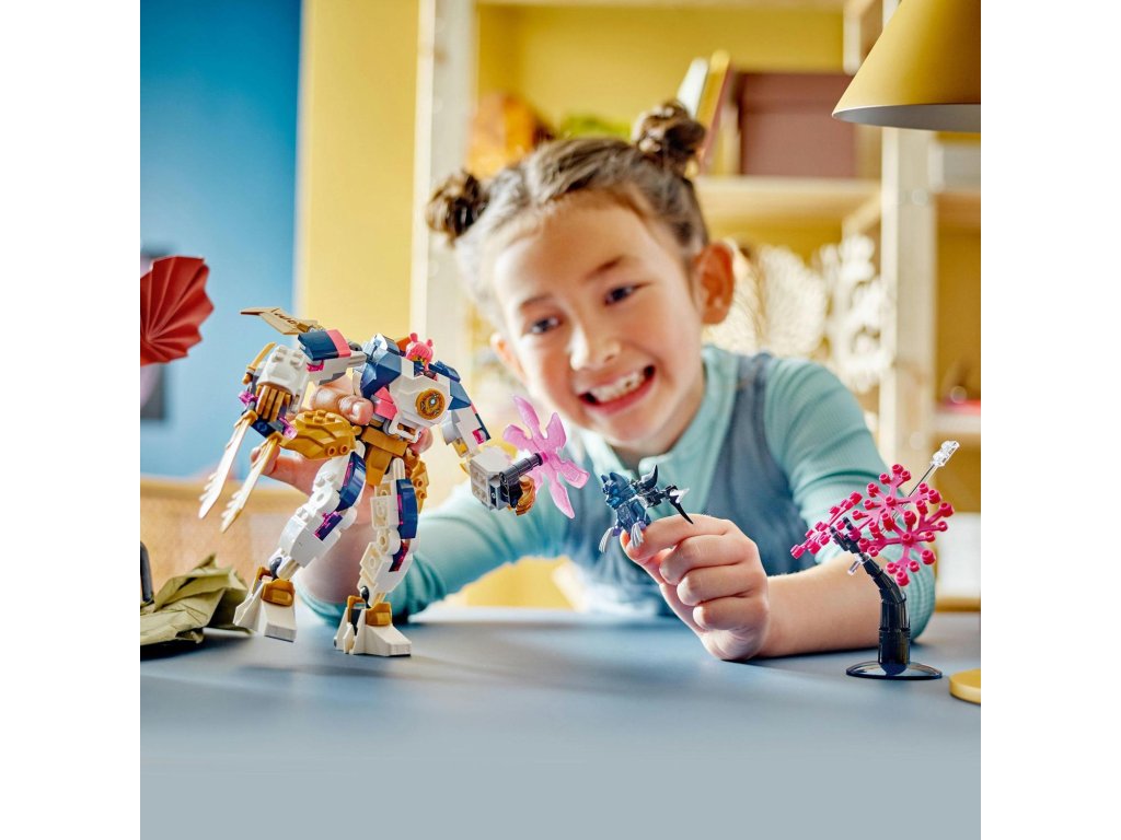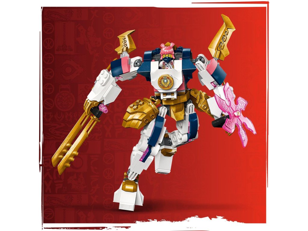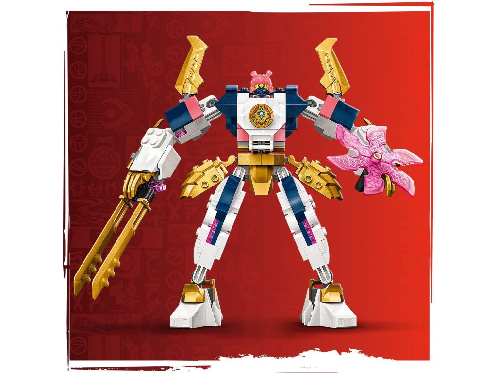 Chlapci a dievčatá od 7 rokov si môžu zinscenovať príbehy z 2. série televízneho seriálu NINJAGO® Dragons Rising s týmto modelom Sorin živelný technický robot (71807). Parádny robot má polohovateľné ramená a nohy, ktoré sa dajú nakláňať a otáčať do dramatických bojových postojov, plus veľké kladivo, rotujúcu čepeľ a kokpit, do ktorého môžete umiestniť minifigúrku. S týmto doteraz nevídaným prispôsobiteľným robotom si deti môžu postaviť vlastného robota! Jeho odnímateľné nohy, ruky a trup možnoskombinovať s časťami 2 ďalších robotov: Coleov živelný zemský robot (71806) a Kaiov živelný ohnivý robot (71808) (predávané samostatne). Deti si môžu užiť hodiny zábavy pri kombinovaní a prepájaní súčastí robotov a vytvoria si vlastnú akčnú hračku. Táto nindžovská hračka sa dodáva s 2 minifigúrkami – Sorou s mečmi katana a Pazúrnatým bojovníkom vo vlčej maske – takže deti si môžu zinscenovať napínavú nindžovskú akciu. Stavebnicu si môžete postaviť aj pomocou aplikácie LEGO® Builder, ktorá vás a vaše dieťa prevedie jednoduchým a intuitívnym staviteľským dobrodružstvom.Dodatočné parametre