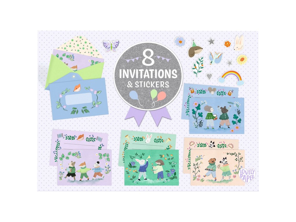 Sprievod zvierat: 8 pozvánok & samolepkyVeselá sada na oslavy a tvorenieSprievod zvierat: 8 pozvánok a samolepiek je zábavná sada pre deti, ktorá obsahuje 8 farebných pozvánok so zvieracou témou, 8 ilustrovaných obálok a samolepky na ich ozdobenie. Sada je ideálna na narodeninové oslavy, tematické párty alebo na tvorivé aktivity.Dizajn má metalické detaily a matnú potlač.Prečo si vybrať sadu od Djeco8 pozvánok so zvieracím motívomsamolepky na ozdobenieskvelé na oslavy a tvorivé hryObsah balenia8 kusov pozvánok s ilustráciami8 obálok2 hárky samolepiek na zdobenieDodatočné parametre
