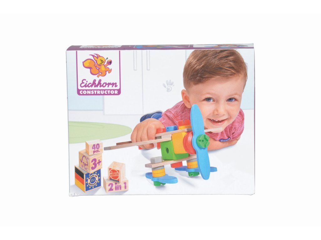 Drevená stavebnica, z ktorej je možné zostaviť 2 modely: lietadlo alebo helikoptéru. Obsahuje 40 dielov. Plastové spojovacie diely.Dodatočné parametre