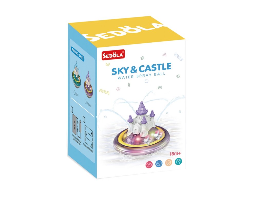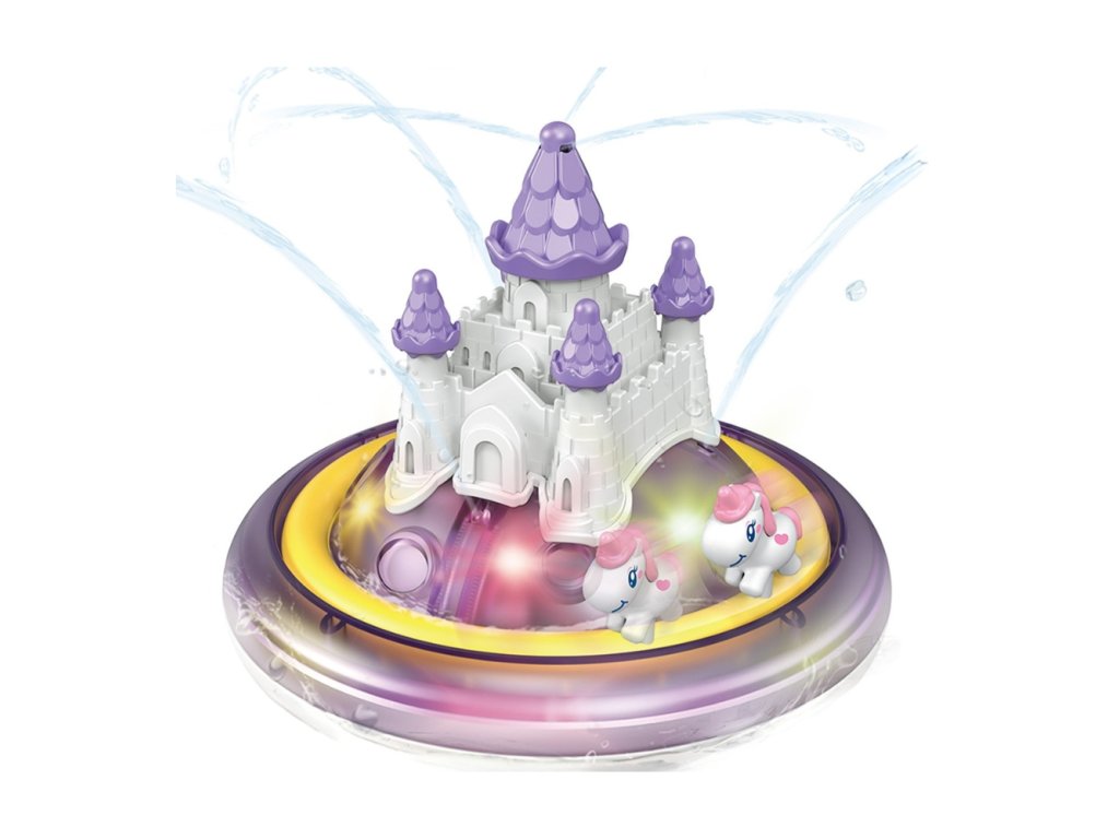Striekacia hračka do vody Hrad fialovýPlávajúci rozprávkový zámokStriekacia hračka do vody Hrad fialový premení kúpanie na rozprávkový príbeh, v ktorom hlavné slovo majú voda, farby a fantázia. Po položení na hladinu sa vďaka indukčnému spínaču automaticky zapne čerpadlo, ktoré vytvára jemné vodné prúdy striekajúce z okraja hračky smerom nahor, zatiaľ čo hrad s poníkmi pláva po hladine. Vo vnútri základne svietia farebné LED svetlá, ktoré rozžiaria vodu a vytvoria efekt kúzelnej fontánky. Hračka podporuje zmyslové vnímanie, predstavivosť a motivuje deti, aby si kúpanie spájali s príjemným zážitkom, nie povinnosťou. Hrad je vyrobený z kvalitného plastu s hladkými hranami, batérie sú ukryté v utesnenom priestore určenom na kontakt s vodou, takže je vhodný pre deti od 3 rokov na hru vo vani aj v bazéne. Striekacia hračka do vody Hrad fialový je skvelým darčekom pre všetky deti, ktoré milujú rozprávkové hrady, poníkov a vodné hry plné svetiel.Dodatočné parametre