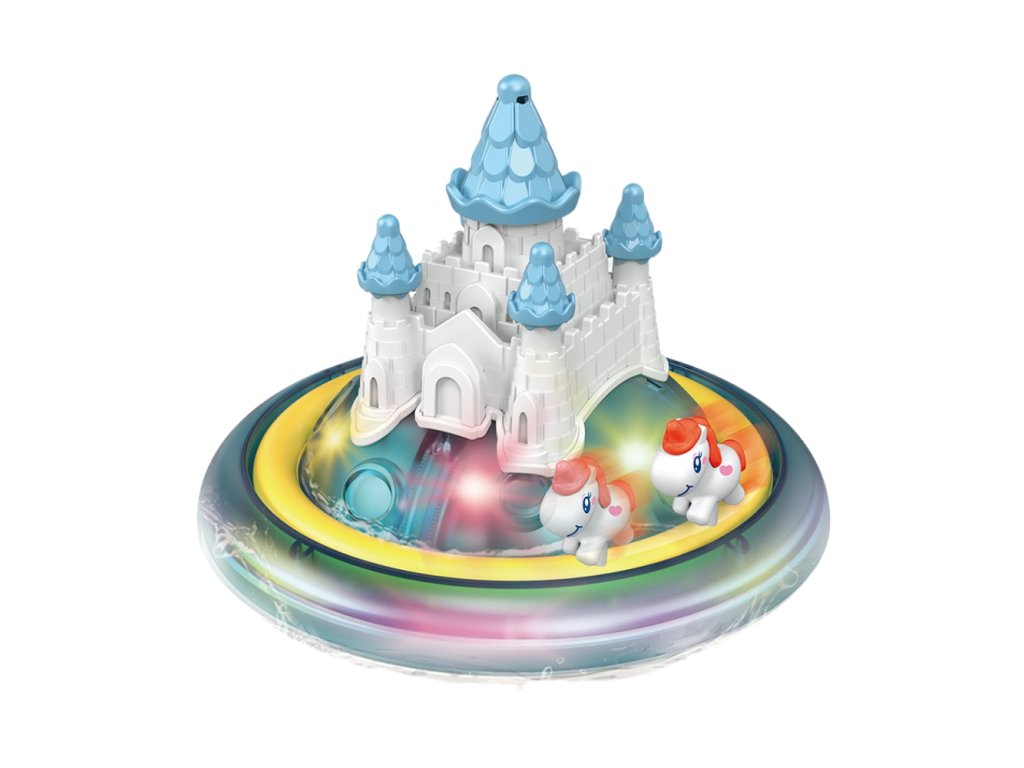Striekacia hračka do vody Hrad modrýKúpeľ ako v rozprávkeStriekacia hračka do vody Hrad modrý zmení obyčajné kúpanie na rozprávkové predstavenie, v ktorom sa po hladine vznáša modrý zámok s poníkmi a okolo neho striekajú prúdy vody. Po položení na vodu sa automaticky aktivuje čerpadlo, ktoré vytvára jemnú vodnú fontánku smerom nahor, zatiaľ čo vo vnútri základne blikajú farebné svetielka a rozjasňujú celú vaňu. Táto vodná hračka podnecuje detskú fantáziu, zmyslové vnímanie a pomáha deťom spájať kúpanie s príjemnou hrou. Hrad je vyrobený z kvalitného plastu s hladkými hranami a je vhodný pre deti od 3 rokov na hru vo vani aj v bazéne. Striekacia hračka do vody Hrad modrý je skvelým darčekom pre malé princezné, rytierov aj všetky deti, ktoré milujú poníkov, hrady a vodné hry.Dodatočné parametre