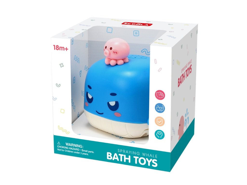Striekacia hračka do vody Veľryba modráKúpanie plné radosti a vodnej zábavyStriekacia hračka do vody Veľryba modrá premení každé kúpanie na zábavnú vodnú šou. Po položení na hladinu sa pomocou spodných senzorov alebo spínača automaticky aktivuje vodné čerpadlo, ktoré vytvorí jemnú fontánku striekajúcu z chrbta veľryby. Deti s nadšením sledujú, ako modrá veľryba pláva po vode a špliecha okolo seba drobné pramienky. Hravý vzhľad dotvára malá žltá kačička sediaca na chrbte, ktorá pôsobí ešte veselšie v kontraste s modrou farbou hračky. Hračka prirodzene podporuje zmyslové vnímanie, povzbudzuje deti k aktívnej hre vo vode a postupne im pomáha vytvoriť si pozitívny vzťah ku kúpeľným rituálom. Veľryba je vyrobená z kvalitného, odolného plastu s hladkými hranami, bezpečného pre deti. Batérie sú uložené v utesnenom vodotesnom priestore, vďaka čomu je hračka vhodná do vane aj bazéna. Ideálna je pre deti približne od 3 rokov. Striekacia hračka do vody Veľryba modrá je skvelým darčekom pre všetky malé milovníčky a milovníkov vodných hier a morských živočíchov.Dodatočné parametre