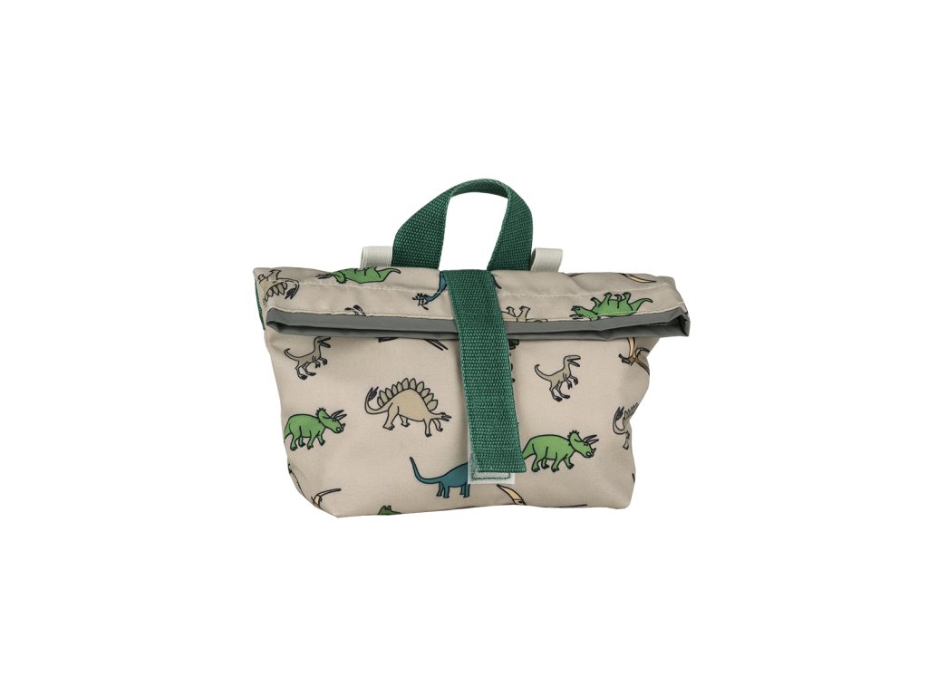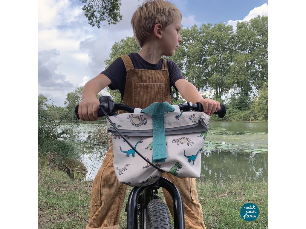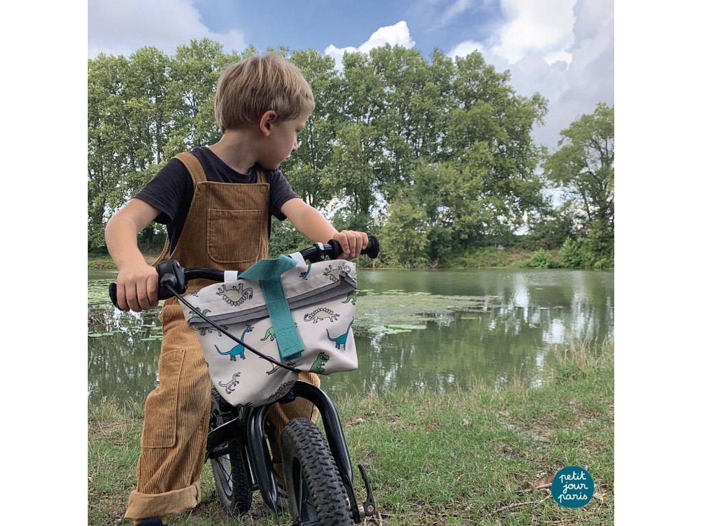 Taška na bicykel s dizajnovým motívom dinosaurov od francúzskej značky Petit Jour s rozmermi 28 x 19 x 10 cm a objemom 5,5 l sa skvele hodí na odrážadlo, bicykel aj kolobežku. Má jedno veľké vrecko so zapínaním na suchý zips. Vďaka tomu do nej deťom dobre ukladajú veci ako občerstvenie, voda, peňaženka, hračky, mobil a iné. Dá sa namontovať na akýkoľvek kov. Dôležitý je aj výrazný reflexný pásik na prednej strane tašky.