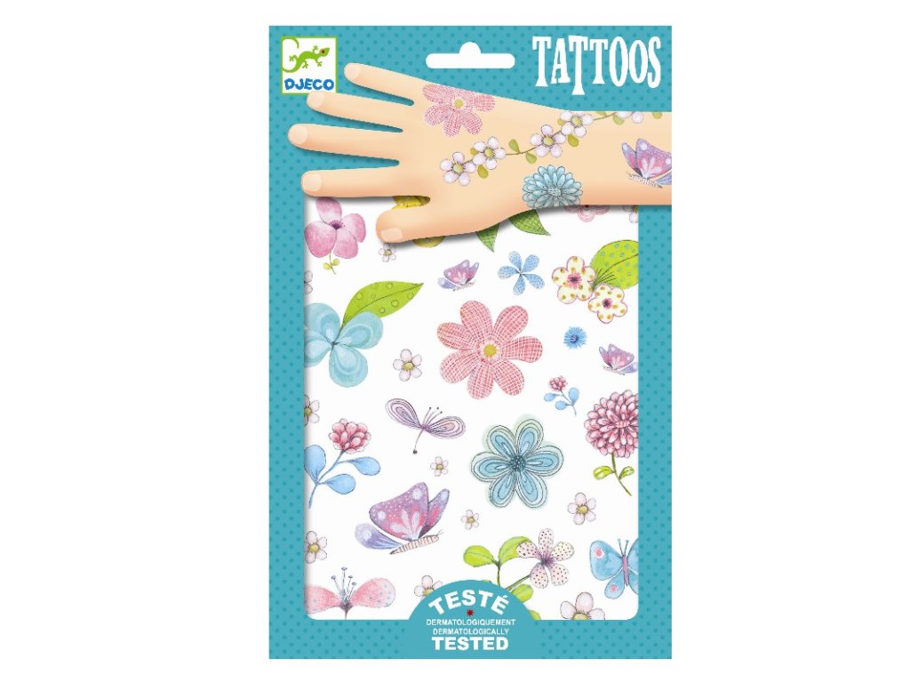 Tetovačky Kvety Krásne kvetové tetovačky 2 hárky dočasných tetovačiek s elegantnými ilustráciami kvietkov a motýľov. Deti navyše poteší trblietavý lesk. Jednotlivé tetovačky sa z hárkov ľahko vytrhávajú. Tetovačky sú dermatologicky testované. Aplikácia: odstráňte fóliu, priložte tetovačku na kožu, navlhčite podkladový papier, jemne pritlačte, papier stiahnite. Po obnosení odstráňte mydlovou vodou alebo jemným odličovacím prípravkom.Obsah: 50+ ks na 2 hárkoch, návod na použitieDodatočné parametre