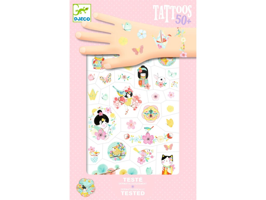 Tetovačky Sakura Kvetinové tetovačky pre malé parádnice Objav čaro japonskej jari s jemnými a krásne ilustrovanými tetovačkami Sakura. Tieto dočasné tetovania sú navrhnuté s motívmi čerešňových kvetov v jemných farbách a sú ideálne pre deti, ktoré milujú jemnú krásu a kreativitu. Vďaka predrezaným hárkom sa ľahko aplikujú a ich odstránenie je jednoduché pomocou vody a mydla. Dermatologicky testované a vyrobené z ekologických materiálov s certifikátom FSC®.Dodatočné parametre