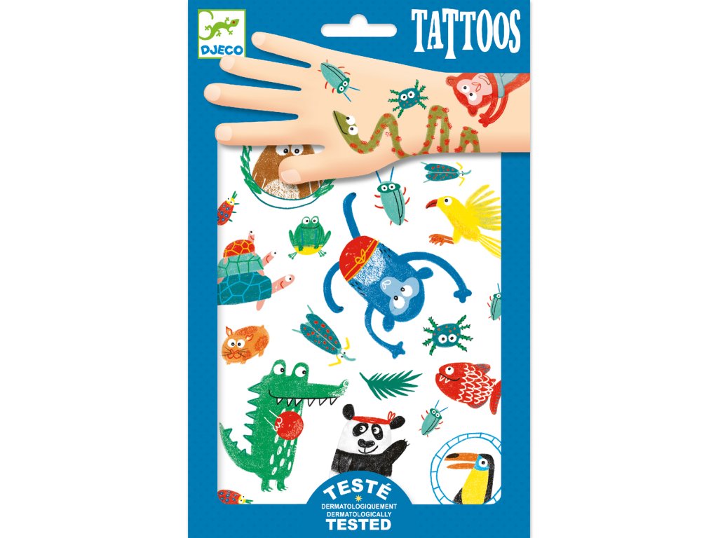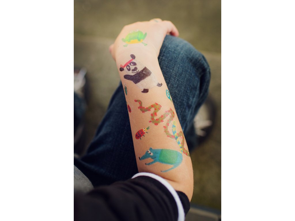 Tetovačky Zvieratká Zvieratká v hlavnej úlohe: veselé ňufáčiky, ktoré deti milujúDočasné tetovačky Zvieratká prinášajú opičky, pandy, krokodíly a ďalšie zvieratká v zábavnom štýle a výrazné farby a hravé zvieracie ňufáčiky. Sú predvystrihnuté, takže aplikácia je rýchla – stačí trocha vody. Dermatologicky testované.Rýchly prehľad odporúčaný vek: od 3 rokov v balení: 2 hárky, návod motívov: viac než 50 aplikácia: vodou odstránenie: mydlovou vodou alebo jemným odličovačom materiál: papier a kartón z udržateľných zdrojov (FSC)Prečo si ich deti zamilujú výrazné farby a hravé zvieracie ňufáčiky pre okamžitý „wow“ efekt jednoduché použitie – ideálne na oslavy, karneval aj „len tak“ predvystrihnuté motívy: menej strihania, viac zábavy na pokožke vydržia niekoľko dní a potom sa ľahko zmyjúAko to funguje Vystrihni vybraný motív. Zlož priehľadnú ochrannú fóliu. Prilož tetovačku obrázkom na kožu a navlhči papier (hubkou alebo handričkou). Po ~30 sekundách papier zlož. Hotovo!Obsah balenia 2× hárky dočasných tetovačiek 1× návod na použitieTechnické parametre typ: dočasné tetovačky pre deti počet: viac než 50 motívov (2 hárky) rozmery hárku: 14 × 21 cm rozmery balenia: 14,5 × 23 cm testovanie: dermatologicky testované materiál: papier/kartón (FSC)Dodatočné parametre