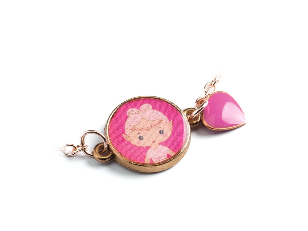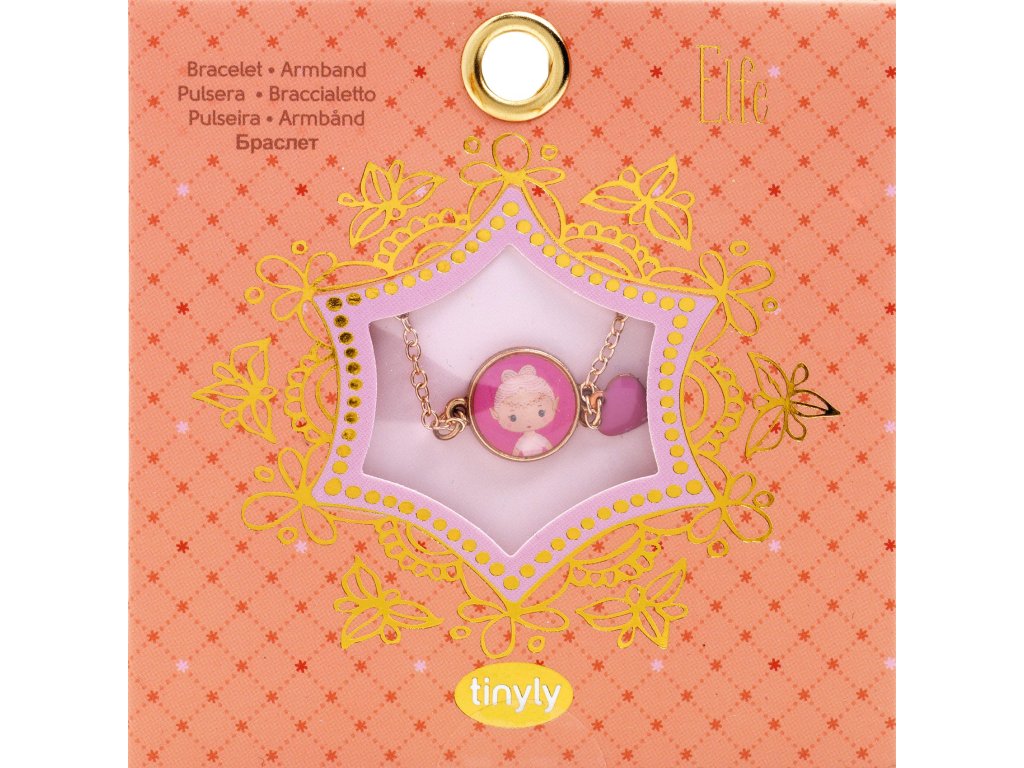Tinyly náramok Elfe Srdiečko pre radosť: Tinyly náramok Elfe v romantickom štýleTinyly náramok Elfe je jemný detský náramok z kolekcie Tinyly. Na pozlátenej kovovej retiazke visí ilustrovaný medailónik s portrétom postavičky a k nemu ladiaca ozdôbka – romantický prívesok v tvare srdiečka.Srdiečko pôsobí nežne a romanticky – náramok je krásny drobný darček, ktorý sa hodí takmer ku všetkému. Vďaka nastaviteľnému zapínaniu sa dá veľkosť jednoducho prispôsobiť detskému zápästiu.Rýchly prehľad odporúčaný vek: od 4 rokov typ: detský náramok s medailónikom a príveskom materiál: kovová retiazka (pozlátený vzhľad), ilustrované prvky dĺžka retiazky: cca 18 cm veľkosť medailónika: Ø 13 mm balenie: darčekové kartónové puzdro s okienkomPrečo si ho deti zamilujú jemný šperk, ktorý pôsobí „dospelácky“, no stále hravo medailónik s postavičkou Tinyly – každý model má svoj príbeh praktické zapínanie – náramok sa dá prispôsobiť krásny tip na malý darček (oslava, odmena, „len tak“)Obsah balenia 1× náramok (kovová retiazka so zapínaním) 1× ilustrovaný medailónik 1× prívesok (romantický prívesok v tvare srdiečka)Technické parametre zapínanie: nastaviteľné (karabínka + očká) dĺžka retiazky: cca 18 cm medailónik: Ø 13 mm rozmery balenia: cca 9 × 9 × 0,2 cmDodatočné parametre