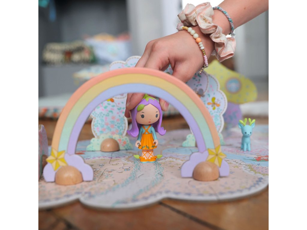 Tinyly Puzzl’Up – Elfka Lily a kúzelný svet 33 ks Postav rozprávkovú 3D scénu s elfkou Lily a jej kamarátom PolomTinyly Puzzl’Up – Elfka Lily a kúzelný svet je originálne podlahové puzzle, ktoré spája skladanie obrázka s tvorbou priestorovej (3D) rozprávkovej scény. Dieťa najprv poskladá veľký ilustrovaný podklad a potom doň doplní zvislé prvky na drevených podstavcoch – vďaka nim svet Tinyly „ožije“ a pozýva k hre.Súčasťou je aj figúrka elfky Lily a jej spoločník Polo, s ktorými si deti môžu v poskladanej krajinke vymýšľať vlastné príbehy. Jemné ilustrácie, pevné dieliky a priestorové doplnky podporujú fantáziu, sústredenie aj jemnú motoriku – ideálne na pokojné tvorivé hranie doma.Pre koho je vhodná: odporúčaný vek: 4 – 9 rokovHlavné benefity kombinuje podlahové puzzle a tvorbu 3D scény podporuje fantáziu a rozprávanie príbehov rozvíja jemnú motoriku, pozornosť a priestorové vnímanie veľké dieliky z pevného kartónu – dobre sa skladajú po hre sa dá všetko prakticky upratať do krabice vyrobené z papiera a kartónu s FSC® certifikáciouObsah balenia 24 veľkých dielikov podlahového puzzle 9 zvislých dielikov na drevených podstavcoch (scénické prvky) 1 figúrka (Lily) + 1 spoločník (Polo)Dodatočné parametre
