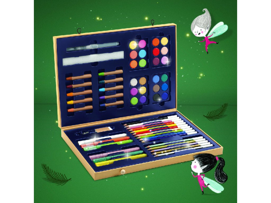 Trblietavý výtvarný kufrík s obalom na vyfarbenieKreatívna výtvarná sada s trblietavými a metalickými farbami v kufríkuTrblietavý výtvarný kufrík s obalom na vyfarbenie je úžasná kreatívna sada pre deti, ktorá kombinuje výtvarné potreby v praktickom kufríku s možnosťou vyfarbiť si vlastný obal podľa fantázie. Kufrík obsahuje rôzne typy farieb vrátane trblietavých, perleťových, metalických aj klasických gvašových farieb, ďalej má pastelky, farebné fixky, štetec s nádržkou na vodu, špongiu, strúhadlo a gumu, takže deti môžu kresliť, maľovať aj kombinovať techniky. Kufrík slúži zároveň ako úložný priestor pre všetky výtvarné pomôcky a motivuje deti k dlhšej kreatívnej hre aj tvorbe.Prečo si vybrať tento kreatívny kufrík od Djecovhodný pre deti od 6 rokovobsahuje rôzne typy farieb a dekoratívne médiámožnosť vyfarbiť si obal kufríka podľa vlastnej fantáziekvalitné výtvarné pomôcky pre kreslenie, maľovanie a kresbupraktický prenosný kufrík s priestorom na uloženie potriebideálny darček pre kreatívne deti aj umelcov začiatkovČo sada rozvíja u detíkreativitu a fantáziu pri tvorbe obrázkov a dizajnovjemnú motoriku pri manipulácii s farbami a nástrojmischopnosť kombinovať rôzne výtvarné technikytrpezlivosť pri dotváraní dielzmysel pre farby, kompozíciu a sebavyjadrenieObsah baleniakufrík s výtvarnými potrebami:10 akvarelových pasteliek1 štetec s nádržkou na vodu1 špongia6 neónových gvašových farieb6 perleťových gvašových farieb12 klasických gvašových farieb1 strúhadlo1 guma na gumovanie10 farbičiek5 farbičiek s metalickým leskom3 farebné popisovače3 trblietkové farebné popisovačeDodatočné parametre