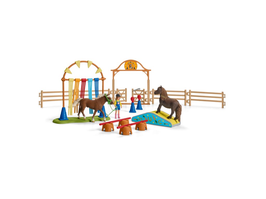 Schleich® figúrky sú všetky modelované v najjemnejšom detaile, láskavo maľované a povzbudzujú deti k tomu, aby sa hrali a zároveň sa učili. Počas výcviku agility sa poníci hravo zoznámia s radom prekážok. Po prvé, je im dovolené oňuchať hore a dole. Potom sú poníci opatrne vedení cez a okolo prekážok. Na niektoré prekážky potrebujú poníci získať veľa odvahy. V tomto období je dôležité byť trpezliví a láskavo povzbudzovaní. Tréning agility podporuje dôveru a istotu poníkov. Sada prekážok sa dá rôzne kombinovať podľa vašich predstáv. Mostík možno obrátením používať ako hojdačku. Figúrky detí majú pohyblivé končatiny. Vhodné ako pre veľké, tak pre malé kone. Sada obsahuje: 2 figúrky koní, figúrku dieťaťa a množstvo doplnkov. Rozmer balenia: 24,5 x 6,6 x 19 cm. Rozmer rozbalenej sady cca 53 x 45 x 19,6 cm. Nevhodné pre deti do 3 rokov. Odporúčaný vek: 3-8Dodatočné parametre