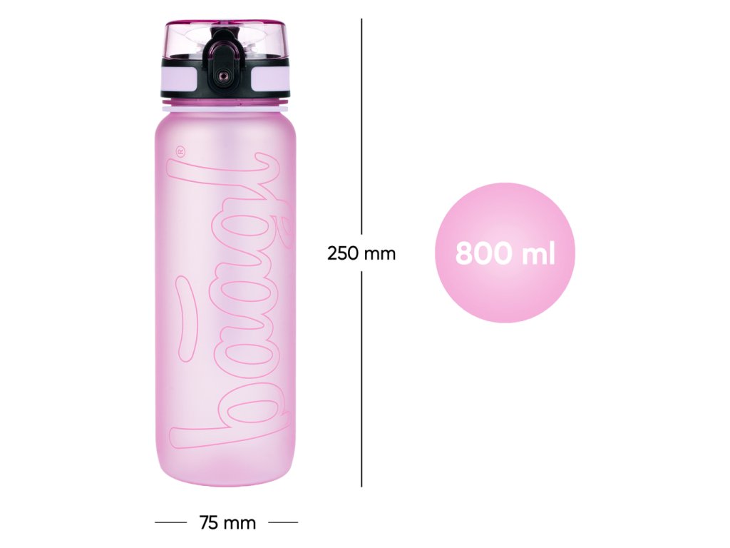 Tritanová fľaša na nápoje Lavender 800 ml V školskej výbave nesmie chýbať poriadna fľaša na nápoje Fľaša od BAAGLa je vhodná ako do školy, tak aj na výlety alebo na športový krúžok. Uzamykateľné viečko neprepustí ani kvapku nápoja a zabezpečuje jednoduchú a intuitívnu manipuláciu. Súčasťou fľaše je sitko, vďaka ktorému môžete fľašu použiť i na limonády s ovocím alebo čaj (materiál je vhodný aj na horúce nápoje). K fľaši je pripevnené pútko, ktoré umožňuje pohodlné nosenie v ruke.Certifikovaný tritánový materiál zaručuje maximálnu bezpečnosť a kvalitu nápoja Nevydáva nepríjemný plastový zápach, ako je to pri iných plastových materiáloch, a zároveň neobsahuje žiadne zdraviu škodlivé látky (BPA, PVC, ftaláty, či iné). Ostatne, výrobky z tritánu sa používajú aj v zdravotníctve. Používaním fľaše znížite plastový odpad z jednorazových PET fliaš a pomôžete tak znížiť objem vyprodukovaného plastového odpadu, ktorý doteraz končí prevažne na skládkach, v spaľovniach, alebo často aj v prírode.Objem fľaše je 800 ml.Dodatočné parametre