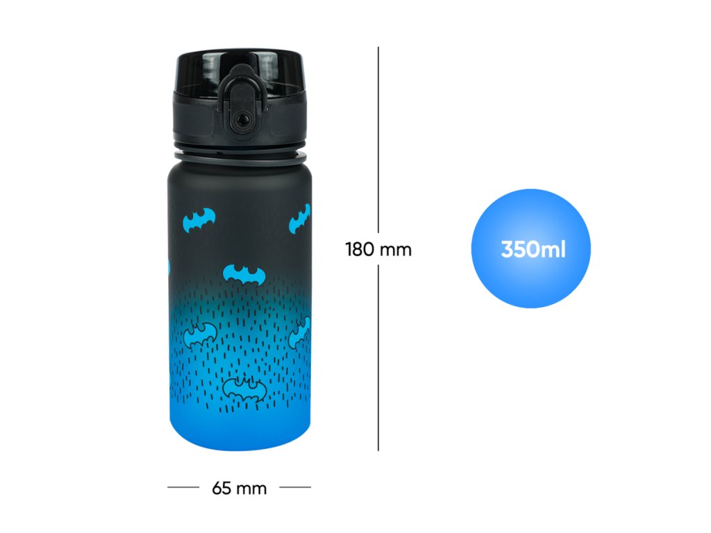 Tritanová fľaša pre deti Gradient Batman Blue 350 ml V školskej výbave nesmie chýbať poriadna fľaša na nápoje Fľaša od BAAGLa je vhodná ako do školy, tak aj na výlety alebo na športový krúžok. Uzamykateľné viečko neprepustí ani kvapku nápoja a zabezpečuje jednoduchú a intuitívnu manipuláciu. Súčasťou fľaše je sitko, vďaka ktorému môžete fľašu použiť i na limonády s ovocím alebo čaj (materiál je vhodný aj na horúce nápoje). K fľaši je pripevnené pútko, ktoré umožňuje pohodlné nosenie v ruke.Certifikovaný tritánový materiál zaručuje maximálnu bezpečnosť a kvalitu nápoja Nevydáva nepríjemný plastový zápach, ako je to pri iných plastových materiáloch, a zároveň neobsahuje žiadne zdraviu škodlivé látky (BPA, PVC, ftaláty, či iné). Ostatne, výrobky z tritánu sa používajú aj v zdravotníctve. Používaním fľaše znížite plastový odpad z jednorazových PET fliaš a pomôžete tak znížiť objem vyprodukovaného plastového odpadu, ktorý doteraz končí prevažne na skládkach, v spaľovniach, alebo často aj v prírode.Objem fľaše je 350 ml.Dodatočné parametre
