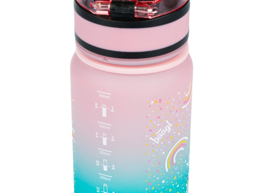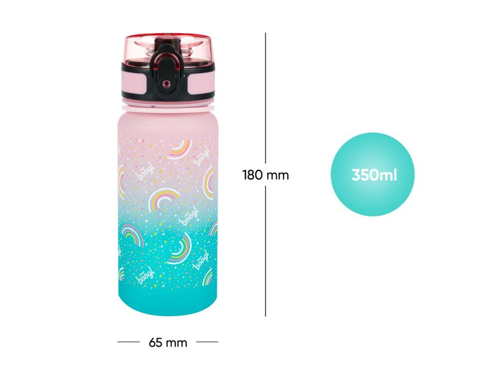 Tritanová fľaša pre deti Gradient Dúha 350 ml V školskej výbave nesmie chýbať poriadna fľaša na nápoje Fľaša od BAAGLa je vhodná ako do školy, tak aj na výlety alebo na športový krúžok. Uzamykateľné viečko neprepustí ani kvapku nápoja a zabezpečuje jednoduchú a intuitívnu manipuláciu. Súčasťou fľaše je sitko, vďaka ktorému môžete fľašu použiť i na limonády s ovocím alebo čaj (materiál je vhodný aj na horúce nápoje). K fľaši je pripevnené pútko, ktoré umožňuje pohodlné nosenie v ruke.Certifikovaný tritánový materiál zaručuje maximálnu bezpečnosť a kvalitu nápoja Nevydáva nepríjemný plastový zápach, ako je to pri iných plastových materiáloch, a zároveň neobsahuje žiadne zdraviu škodlivé látky (BPA, PVC, ftaláty, či iné). Ostatne, výrobky z tritánu sa používajú aj v zdravotníctve. Používaním fľaše znížite plastový odpad z jednorazových PET fliaš a pomôžete tak znížiť objem vyprodukovaného plastového odpadu, ktorý doteraz končí prevažne na skládkach, v spaľovniach, alebo často aj v prírode.Objem fľaše je 350 ml.Dodatočné parametre