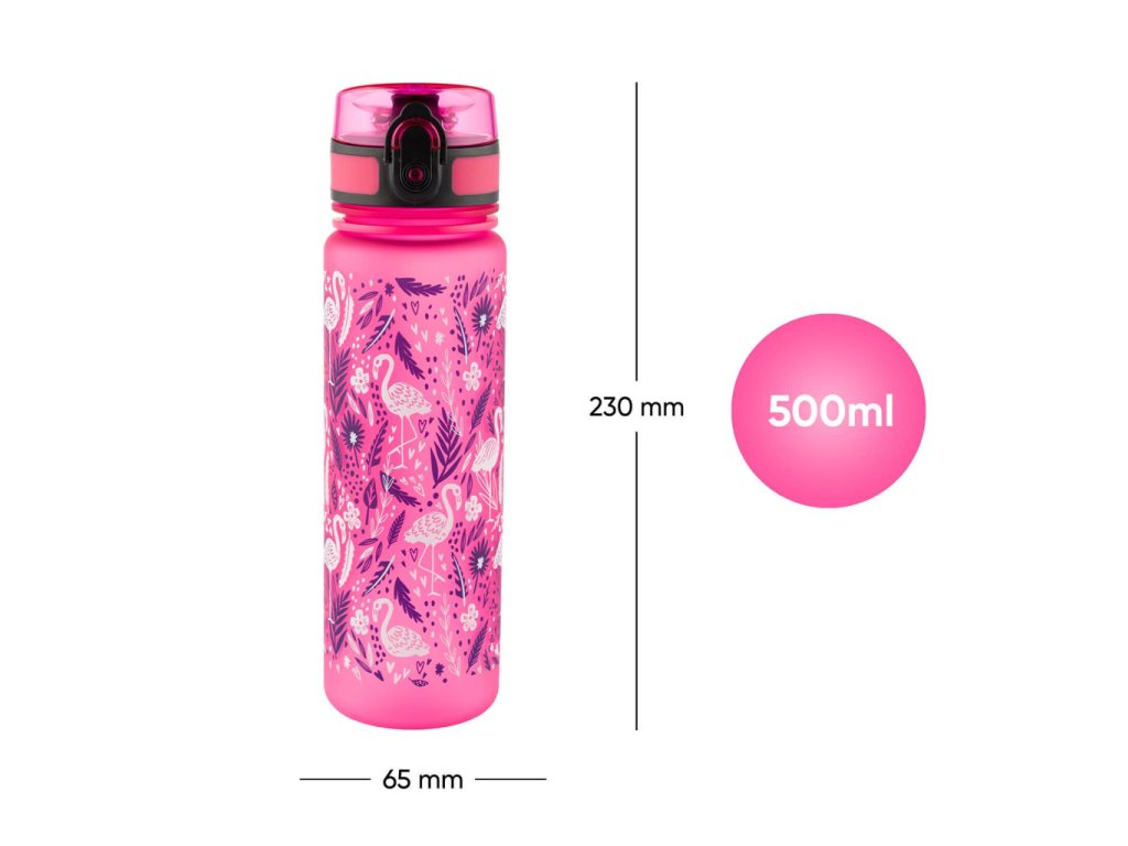 Tritanová fľaša pre deti Plameniak 500 ml V školskej výbave nesmie chýbať poriadna fľaša na nápoje Fľaša od BAAGLa je vhodná ako do školy, tak aj na výlety alebo na športový krúžok. Uzamykateľné viečko neprepustí ani kvapku nápoja a zabezpečuje jednoduchú a intuitívnu manipuláciu. Súčasťou fľaše je sitko, vďaka ktorému môžete fľašu použiť i na limonády s ovocím alebo čaj (materiál je vhodný aj na horúce nápoje). K fľaši je pripevnené pútko, ktoré umožňuje pohodlné nosenie v ruke.Certifikovaný tritánový materiál zaručuje maximálnu bezpečnosť a kvalitu nápoja Nevydáva nepríjemný plastový zápach, ako je to pri iných plastových materiáloch, a zároveň neobsahuje žiadne zdraviu škodlivé látky (BPA, PVC, ftaláty, či iné). Ostatne, výrobky z tritánu sa používajú aj v zdravotníctve. Používaním fľaše znížite plastový odpad z jednorazových PET fliaš a pomôžete tak znížiť objem vyprodukovaného plastového odpadu, ktorý doteraz končí prevažne na skládkach, v spaľovniach, alebo často aj v prírode.Objem fľaše je 500 ml.Dodatočné parametre