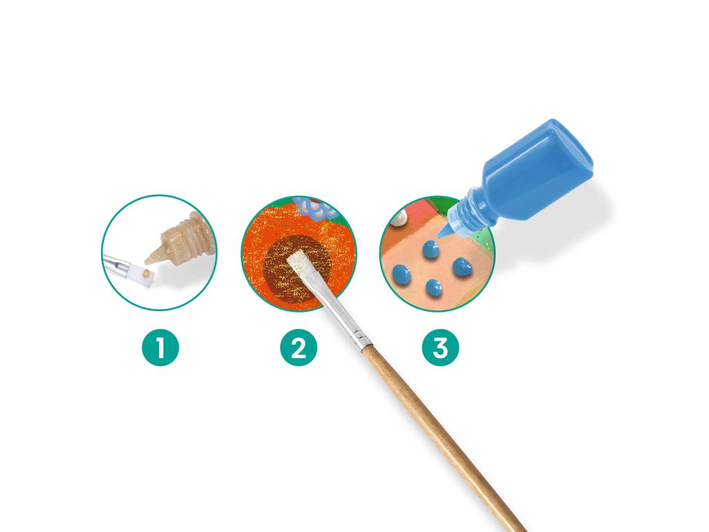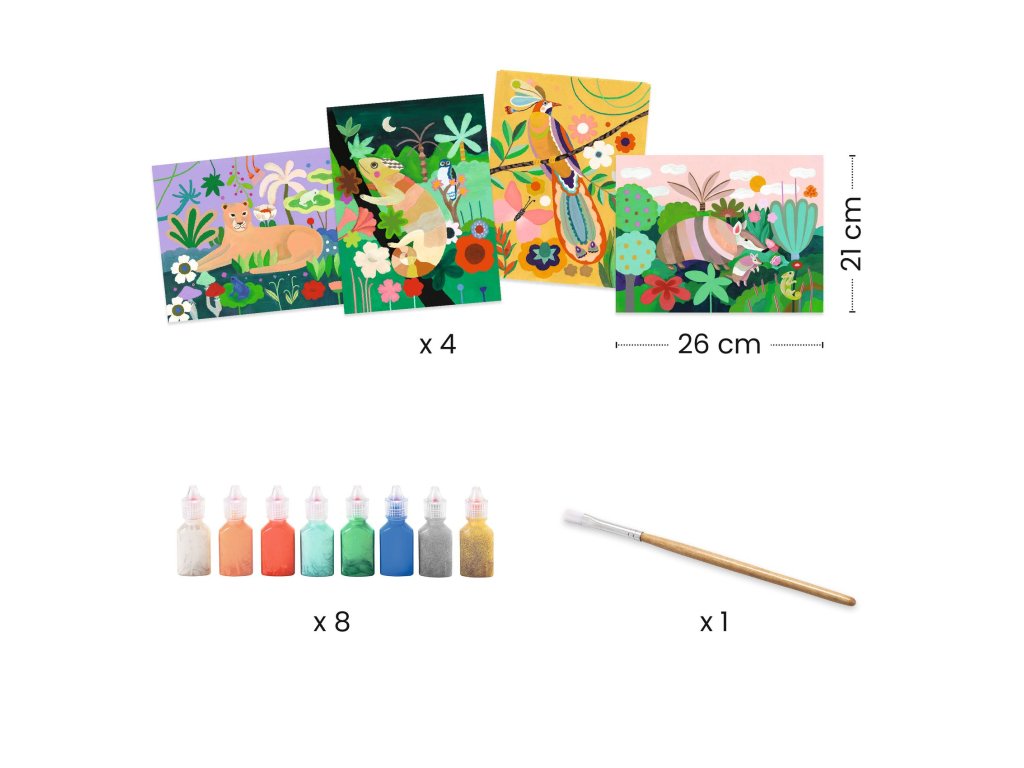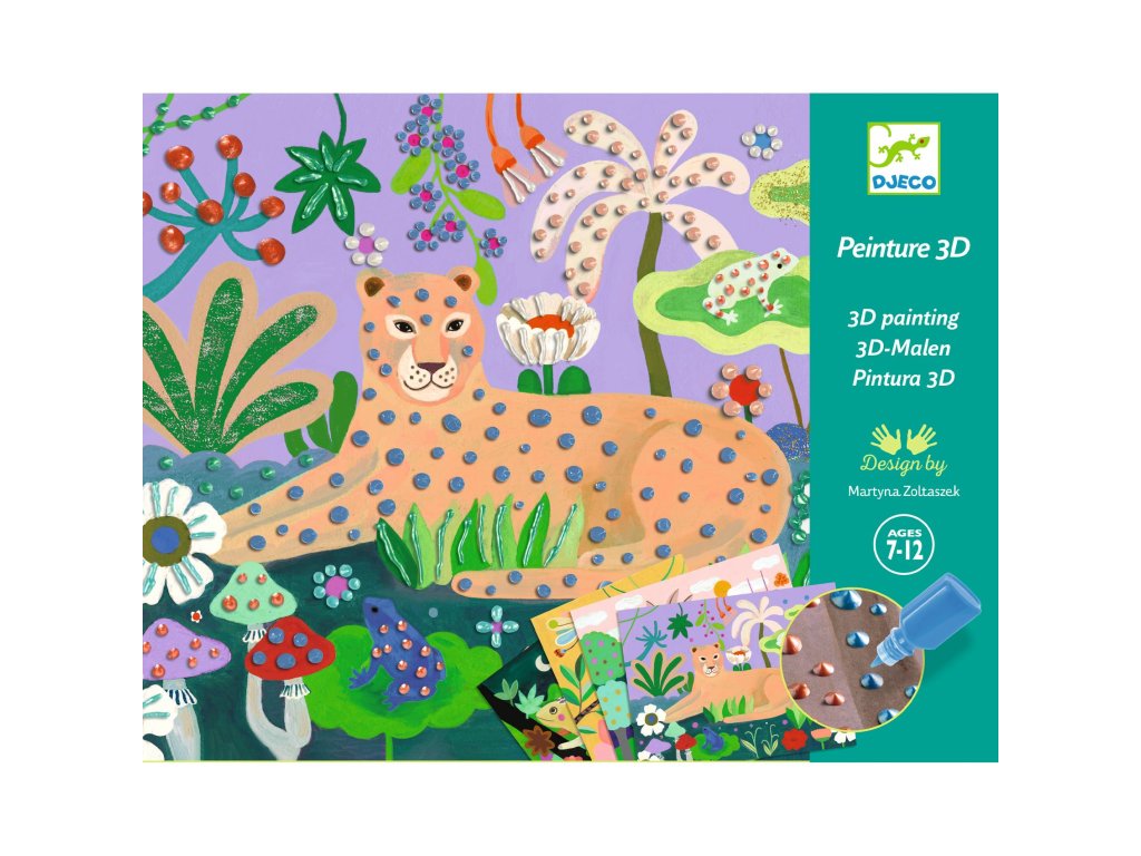 Tropický les: 3D maľovanieKreatívna sada pre deti – 3D maľovanie s farebnými efektmiKreatívna sada Tropický les: 3D maľovanie od Djeco ponúka deťom zábavnú umeleckú aktivitu, pri ktorej pomocou farebných trblietavých, matných aj perleťových farieb vytvoria 3D obrazy s motívmi tropických zvierat a rastlín. Farby sa nanášajú reliéfne, takže výsledné dielo má živý povrch a výrazné efekty. Sada obsahuje ilustrácie pripravené na dokončenie, farby a štetec – deti tak môžu ihneď začať maľovať, miešať farby a vytvárať vlastné umelecké prechody. Táto kreatívna činnosť rozvíja kreativitu, jemnú motoriku a farebné cítenie detí a je ideálna ako darček alebo tvorivý projekt doma či v škôlke.Obsah balenia4 predlohy s motívmi tropického lesa8 farebných 3D farieb (perleťové, trblietavé, matné)1 štetecObrázkový návod krok za krokomPrečo deti túto sadu milujúJednoduché a hravé 3D maľovanieŽiarivé farebné efektyAktívna kreatívna zábavaRozvoj jemnej motoriky a fariebDodatočné parametre