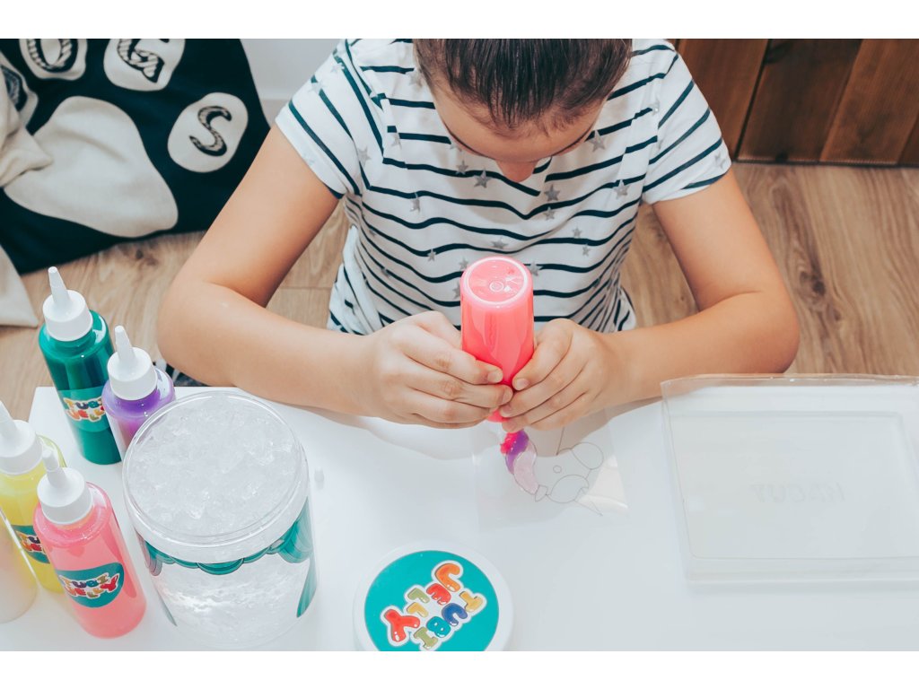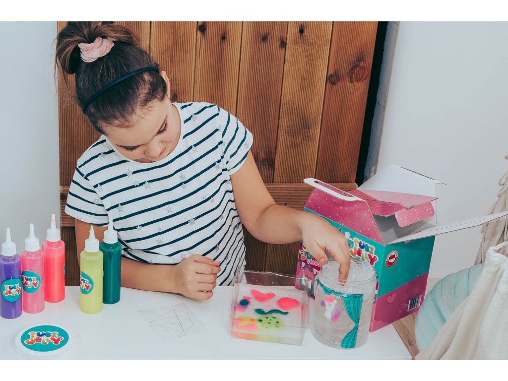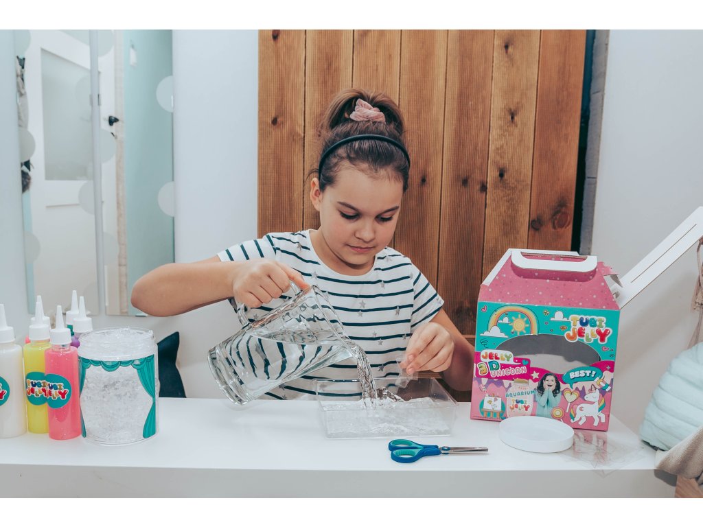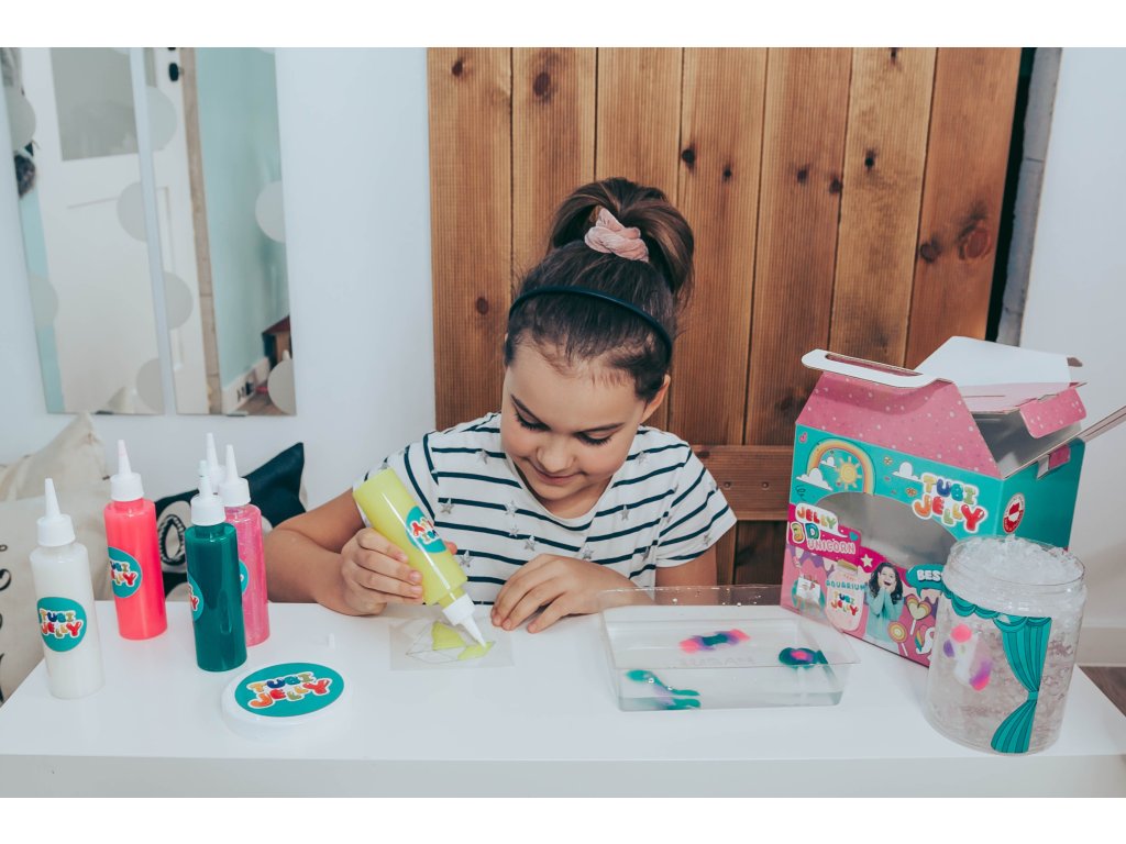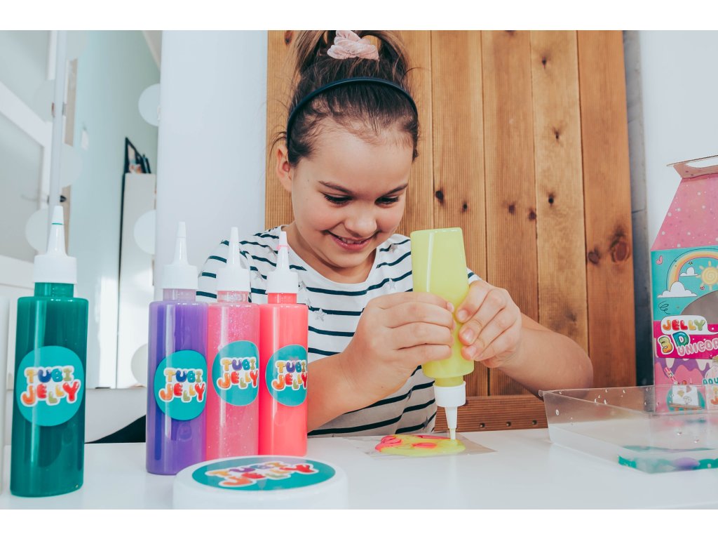 Tubi Jelly Kreatívny set s akváriom XL Jednorožec Vytvorte si 3D gélové figúrky Tubi Jelly set je jedinečná tvorivá sada na tvorbu trojrozmerných figúrok. Set XL obsahuje až 6 farebných gélov. Súčasťou sú taktiež šablóny na kreslenie s motívmi jednorožcov. Po vyplnení šablóny gélmi ju ponoríte do rozpusteného aktivátora a vaša postavička sa premení na svoju trojrozmernú verziu. Vďaka priloženej prázdnej fólii si deti môžu nakresliť a vytvoriť čokoľvek im napadne. Vytvorené figúrky a tvary môžete umiestniť do priloženého akvária, ktoré naplníte vodnými kryštálmi a vytvoríte si tak svoj vlastný malý svet fantázie.Sada obsahuje:tekutý gél 150 ml v 6 farbách,tematické šablóny,6 x 5 g aktivátora,vodné kryštály,nádobu na prípravu figúrok,akvárium.Ocenená hračka roka 2021 V roku 2021 bol produkt Tubi Jelly ocenený titulom Hračka roka v kategórii kreatívne hračky. Vyskúšajte ho aj vy.Všetky produkty značky Tuban sú vyrobené z kvalitných materiálov, sú bezpečné a netoxické, čo znamená, že sa nemusíte obávať o zdravie svojich detí a môžete mať istotu, že ich čakajú len tie najlepšie zážitky.Dodatočné parametre
