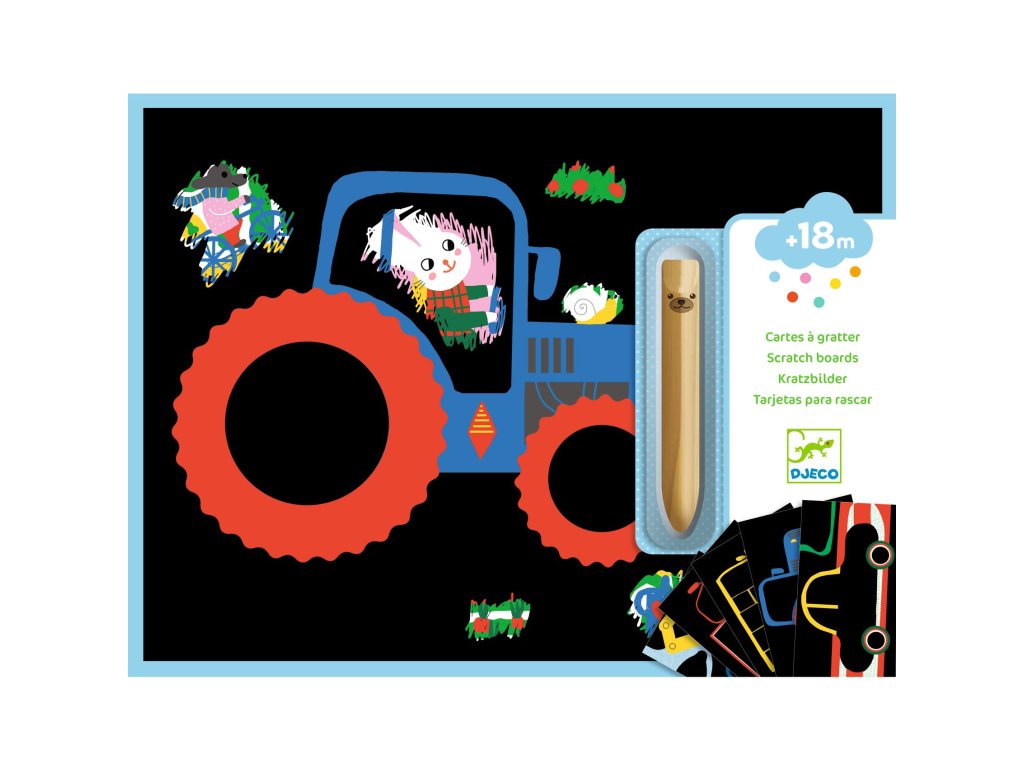 Učím sa o vozidlách: Vyškrabovacie obrázky (5 ks)Preskúmajte fascinujúci svet vozidiel a odhaľte farebné ilustrácie jediným ťahom Vyškrabovacie obrázky Učím sa o vozidlách prinášajú deťom zábavný a vzdelávací spôsob, ako sa zoznámiť so svetom áut a ďalších dopravných prostriedkov. Pod tmavou krycou vrstvou každej kartičky sa ukrývajú ilustrácie vozidiel – stačí vziať drevené vyškrabávacie pero a jemne zoškrabať povrch, aby sa objavili pestré farby. Výsledok je vždy prekvapivý. Tento kreatívny set kombinuje radosť z tvorenia s objavovaním. Deti si pri ňom nielen precvičujú jemnú motoriku a sústredenie, ale zároveň sa učia o rôznych druhoch vozidiel a rozvíjajú svoju fantáziu. Hotové obrázky sú veľké, farebné a môžu byť vystavené – napríklad ako výzdoba detskej izby, alebo poslúžia ako originálna vzdelávacia pomôcka. Čo si deti rozvíjajú: jemnú motoriku sústredenie a trpezlivosť vizuálne vnímanie kreatívne myslenie a umelecké cítenie záujem o techniku a dopravné prostriedky Prečo si vybrať Učím sa o vozidlách: Vyškrabovacie obrázky od Djeco: pútavé ilustrácie rôznych vozidiel efektný proces „odkrývania“ farieb – deti milujú moment prekvapenia kvalitné materiály a bezpečný drevený nástroj Set, ktorý spája hru, kreativitu a prvé poznatky o doprave. Obsah balenia: 5 vyškrabovacích obrázkov s motívmi vozidiel bezpečné drevené vyškrabávacie pero obrázkový návod Komu je sada určená: deťom vo veku 18+ mesiacov malým milovníkom áut, vlakov, lietadiel a dopravy Možné je zoškrabať celú vrchnú vrstvu a odhaliť celý obrázok.Dodatočné parametre