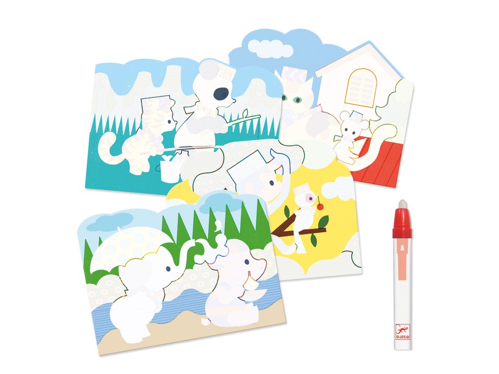 Ukrytí vonku: magické vyfarbovanie vodouKreatívna sada s vodným vyfarbovaním pre najmenšie detiUkrytí vonku – magické vyfarbovanie vodou je hravá výtvarná sada, ktorá umožňuje deťom objavovať obrázky pomocou obyčajnej vody. Stačí naplniť štetec vodou a prejsť ním po siluetových obrázkoch – farby a motívy sa zázračne objavia. Po vyschnutí obrázky opäť zblednú a môžu sa vyfarbovať znova, čo robí túto aktivitu ideálnou na opakované a pokojné hranie bez neporiadku.Prečo si vybrať túto kreatívnu sadu od Djecovhodná pre deti od 18 mesiacovmagický efekt vyfarbovania iba pomocou vodyopakovateľné vyfarbovanie po vyschnutí obrázkovsiluetové obrázky s motívom prírody a zvieratiektvorenie bez farbičiek a bez neporiadkuideálna aktivita doma aj na cestáchObsah balenia4 siluetové obrázky s magickým povrchom z ohybného plastuštetec s filcovým hrotom určený na plnenie vodounádržka na voduDodatočné parametre