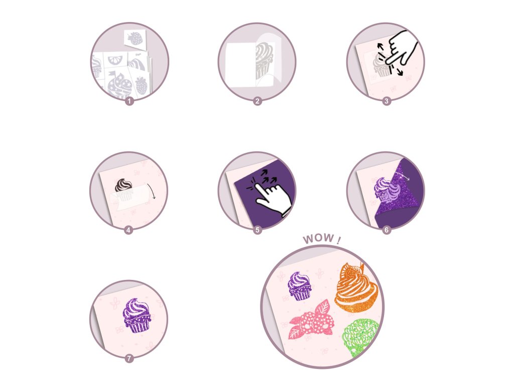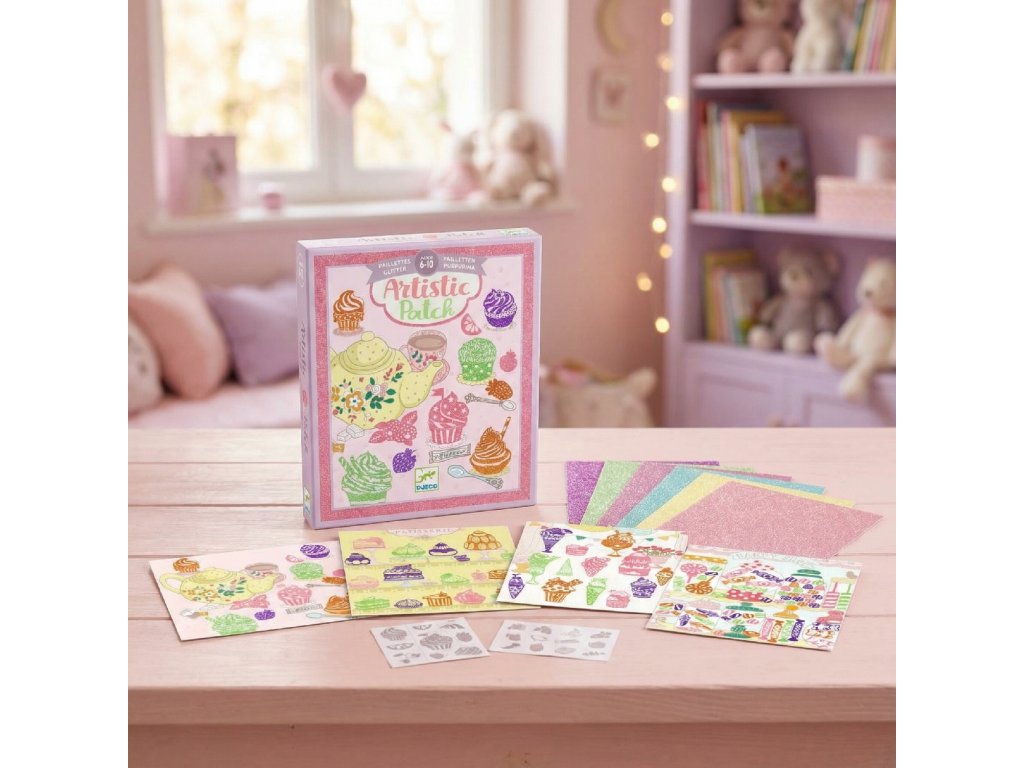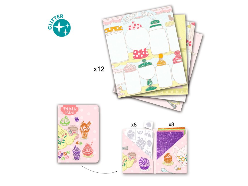 Umelecké obtlačky Maškrty Trblietavé maškrty bez neporiadku: nalep vzor, pritlač fóliu a obrázok sa zmení na lesklú kolážUmelecké obtlačky Maškrty sú kreatívna sada, v ktorej deti zdobia milé „sladké“ obrázky pomocou lepiacich vzorov a trblietavých fólií.Bez lepidla a bez farieb vzniká efektný výsledok – stačí vybrať motív, nalepiť ho na obrázok a potom naň pritlačiť fóliu, ktorá zanechá lesklý povrch.V sade je 12 obrázkov (4 dizajny, každý 3×), takže deti môžu skúšať rôzne kombinácie farieb a vytvoriť si vlastnú „cukrovú galériu“.Všetko sa dá pekne uložiť do odkladacej mapky, aby dieliky nezmizli.Rýchly prehľad odporúčaný vek: 6 – 10 rokov rozvíja: jemnú motoriku, presnosť, sústredenie, cit pre farby v balení: 12 obrázkov, lepiace vzory, trblietavé fólie, odkladacia mapka, návodPrečo si ju deti zamilujú rýchly „wow“ efekt – lesk sa prenesie jedným pritlačením tvorenie bez špiny – bez lepidla a bez farieb veľa možností kombinovania – každá maškrta môže mať iný lesk 12 obrázkov – ideálne aj na viac tvorivých popoludníAko to funguje Vyber si obrázok a rozhodni, ktoré miesta chceš ozdobiť. Vyber lepiaci vzor a nalep ho na vybrané miesto na obrázku. Na vzor polož trblietavú fóliu a pritlač/prehlaď, aby sa lesk preniesol. Fóliu odlep – na vzore zostane trblietavý efekt. Opakuj na ďalších miestach.Obsah balenia 12× obrázok (4 dizajny × 3 ks) 8× hárok lepiacich vzorov 8× hárok trblietavých fólií (4 farby) 1× odkladacia mapka 1× obrázkový návod krok za krokomTechnické parametre rozmer obrázkov: 14 × 16 cm technika: lepiace vzory + prenos trblietavej fólie rozmery balenia: cca 15,5 × 18,5 × 3 cmDodatočné parametre