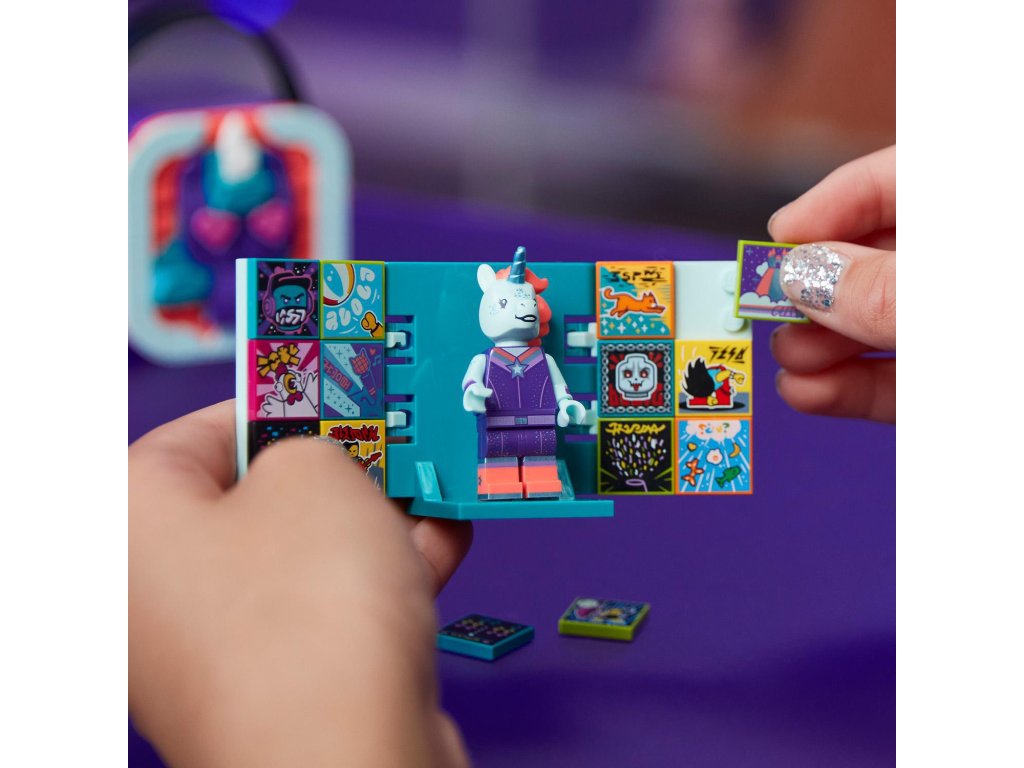 Otvorte dvere do sveta tvorby hudobných videí deťom, ktoré rady tancujú a predvádzajú vystúpenia. S touto sadou LEGO® VIDIYO™ Unicorn DJ BeatBox (43106) je hranie vždy vzrušujúce. Stiahnite si aplikáciu, pomocou ktorej môžete naskenovať minifigúrku hviezdy zo sveta hudby a odhaliť štýlovú stránku DJ-a jednorožca na pódiu. Potom naskenujte BeatBity, odomknite špeciálne efekty, výzvy a ďalšie prvky. Teraz si deti môžu vytvárať svoje vlastné jedinečné hudobné videá, ktoré môžu zdieľať s ďalšími autormi na sociálnych sieťach bezpečných pre deti. Prenosná hračka pre zábavu na cestách Deti budú s nadšením upravovať boxík BeatBox pomocou LEGO dielikov. Môžu použiť dielik jednorožca, mixážneho pultu či dúhy alebo si vymyslieť vlastné prvky. BeatBox sa dá rozložiť a obsahuje priestor na BeatBity a minifigúrku, takže sa ideálne hodí na hry na cestách. Tvorte hudobné zážitky Sady LEGO VIDIYO sprostredkúvajú zážitky z hier prepojených so svetom sociálnych sietí, kde niet obáv o bezpečnosť. Vďaka nim sa deti môžu hrať na režisérov, producentov či hviezdy svojich vlastných hudobných videí. Určite neprehliadnete, ako sa pri tvorbe videí plných hudobných mixov, zábavných postavičiek, pesničiek, tanečných kreácií a úžasných efektov bude rozvíjať ich tvorivosť.Dodatočné parametre