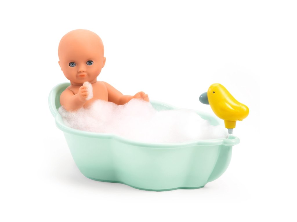Vanička pre bábiky Čas na kúpeľ! Plastová vanička v tvare mušle je vhodná na kúpanie bábik veľkosti 30-36 cm. Súčasťou je aj jemná sprcha v tvare vtáčika, ktorá funguje ako striekacia hračka: keď je voda cez hadičku napumpovaná, vystrekuje cez zobáčik vtáčika. Po kúpeli stačí vodu vyliať a vaničku opláchnuť. Sprcha sa dá na čistenie otvoriť. Obsah: 1 vanička, 1 sprcha, 1 hadička. Odporúčaný vek: 3+ rokov. Rozmery: 36 x 23 x 14 cm. Rozmery balenia: 36 x 23 x 14 cm.Dodatočné parametre