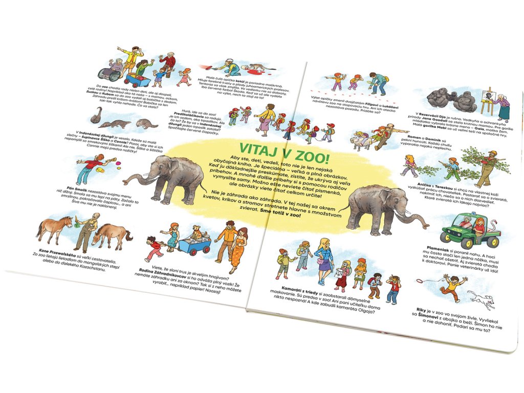 Veľká knižka ZOO pre malých rozprávačov Čo s knihou plnou písmen, ktorým tí najmenší ešte nerozumejú? Ponúknite im naše veľké ZOO leporelo! Príbehy ukryté v detailných celostranových ilustráciách vedú deti k premýšľaniu o tom, čo „čítajú“, a to im pomáha rozvíjať predčitateľské schopnosti, zlepšovať pamäť, pozornosť a logické myslenie.Knihy tak veľmi účinne napomáhajú budovanie slovnej zásoby, komunikačných schopností i logického myslenia Ak si túto špeciálnu knihu plnú krásnych, detailných celostránkových ilustrácií prezriete pozornejšie, zistíte, že ukrýva množstvo príbehov. Tie sa odohrávajú nielen na jednotlivých stranách, ale v celej knihe. A mnohé ďalšie si určite vymyslia samotné deti! Tvorivou prácou s knihou sa podnecujú k tomu, aby premýšľali o tom, čo „čítajú“, rozvíjajú si slovnú zásobu a predčitateľské zručnosti, ako aj zdokonaľujú svoju pamäť, pozornosť a logické myslenie. Veľká obrázková kniha ZOO pre malých rozprávačov vznikla v spolupráci s pražskou ZOO a malí návštevníci sa v nej zoznámia s jednotlivými expozíciami, miestnymi zvieracími obyvateľmi a zamestnancami, ktorí sa o ne starajú.Dodatočné parametre