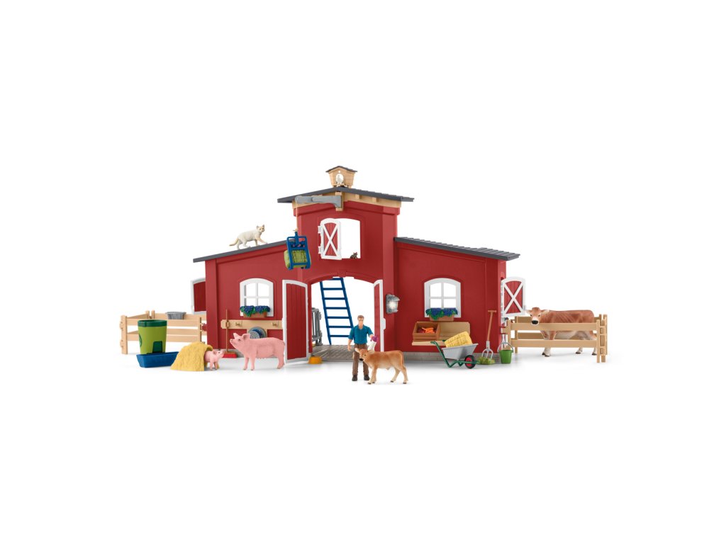 Veľká farma schleich® so zvieratami a príslušenstvom je stredobodom farmárskehoho herného sveta FARM WORLD! Farma schleich®, vybavená mnohými funkciami a doplnkami, ponúka dokonalý domov pre všetky hospodárske zvieratá. Farmár Paul sa s láskou stará o zvieracie obyvateľov v stajni. Všetky figúrky schleich® sú navrhnuté verne do najmenších detailov, s láskou namaľované a zaručujú výchovne hodnotnú hru. Seno je možné napichovať a nakladať do fúrika pomocou vidlí. Farmu je možné rozširovať modul po module pomocou ďalších sád. Rozmery: 56,5 x 37,5 x 10,5 cm. Vek: 3+Dodatočné parametre
