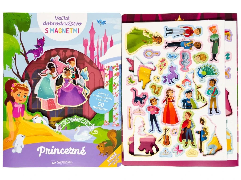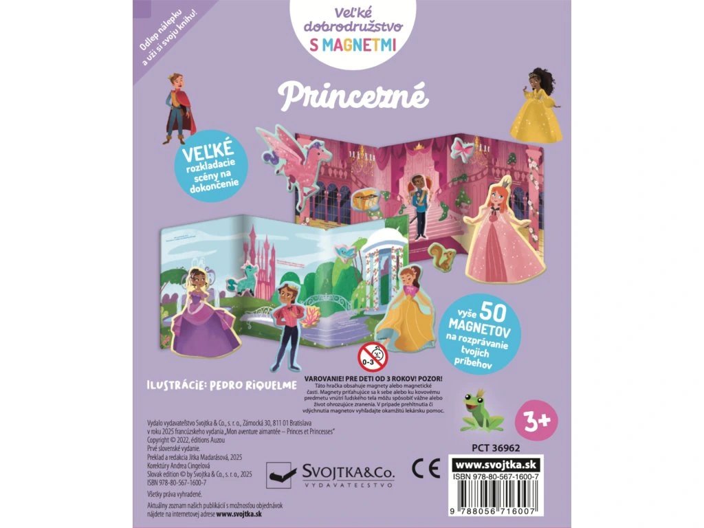 Veľké dobrodružstvo s magnetmi PrinceznéVydaj sa do rozprávkového sveta princezien a princov s touto rozkladacou magnetickou knihou!Veľká magnetická kniha plná princezien, plesov a kúzelných scén. Tvor si vlastné príbehy s viac ako 50 magnetmi! Po rozložení meria 300 × 920 mm a obsahuje dve veľké scény na dopĺňanie viac ako 50 farebnými magnetmi. Vytvor si vlastné príbehy v zámockej záhrade plnej kúzelných bytostí alebo v tanečnej sále, kde sa koná slávnostný ples. Pri hre s magnetmi si deti rozvíjajú jemnú motoriku, predstavivosť i slovnú zásobu. Ideálny darček pre malých milovníkov rozprávok a kráľovských dobrodružstiev.Dodatočné parametre