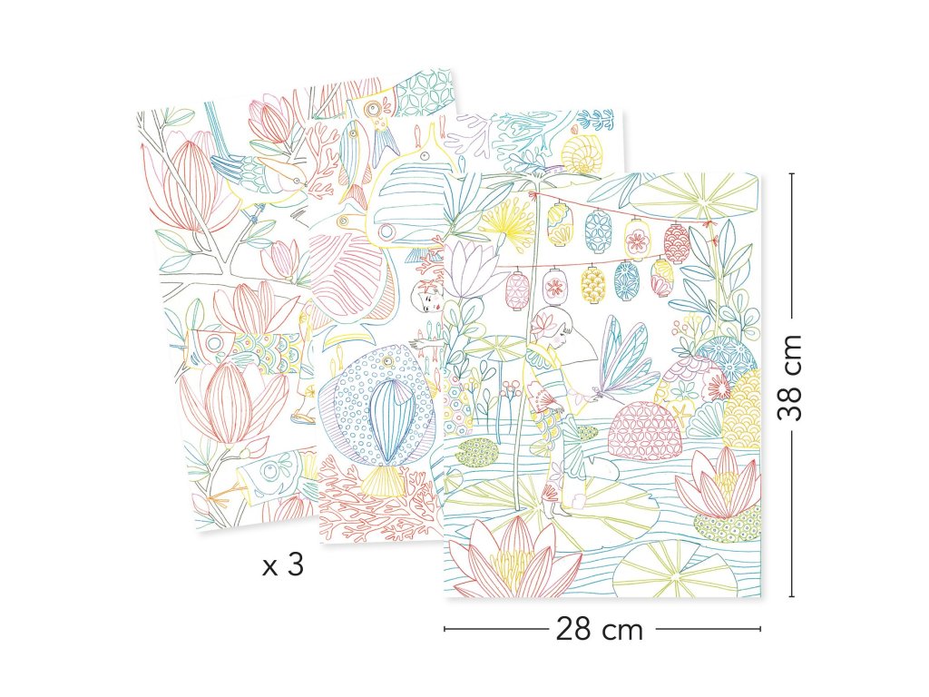 Veľké maľovanky Japonsko Umelecké vyfarbovanie inšpirované Japonskom: 3 veľké plagáty, ktoré vyzerajú skvelo aj zarámovanéVeľké maľovanky Japonsko prinášajú vyfarbovanie v štýle „galérie“ – namiesto malých obrázkov získate 3 veľké ilustrované plagáty, ktoré si môžete vyfarbiť podľa odporúčanej palety alebo úplne po svojom.Každý motív je spracovaný ako umelecký obraz s množstvom detailov, takže tvorenie príjemne vtiahne a upokojí.Plagáty sú uložené v pevnej kartónovej mape, ktorá pomáha udržať obrázky rovné a čisté – a môžete ju použiť aj ako podložku na vyfarbovanie.Súčasťou kolekcie sú aj rôzne „prístupy“ k vyfarbovaniu (napríklad výraznejšie kontúry či odlišné pozadie), vďaka čomu sa dá pekne experimentovať s tieňovaním a kontrastom.Rýchly prehľad odporúčaný vek: 8 – 99 rokov rozvíja: sústredenie, trpezlivosť, cit pre farby, precíznosť v balení: kartónová mapa, 3 veľké plagáty na vyfarbeniePrečo si ich zamilujete 3 veľké formáty – výsledok vyzerá ako hotové umelecké dielo tvorenie bez neporiadku – stačia pastelky, fixky alebo tenké perá kvalitný papier vhodný aj na jemné tieňovanie praktické balenie – plagáty sú chránené v mape a ľahko sa skladujúAko to funguje Vyber si plagát a polož ho na pevný podklad (môžeš použiť aj kartónovú mapu). Zvoľ farby – buď podľa odporúčanej palety, alebo podľa vlastnej fantázie. Vyfarbuj postupne od väčších plôch k detailom; pri tieňovaní skúšaj viac vrstiev. Hotový plagát nechaj vyrovnaný – je ideálny na vystavenie alebo darovanie.Obsah balenia 1× kartónová mapa na uloženie obrázkov 3× ilustrovaný plagát na vyfarbenieTechnické parametre materiál: papier, kartón (z udržateľne spravovaných lesov) rozmery plagátov: 38 × 28 cm rozmery balenia: 40 × 30 × 1 cm vyrobené v EurópeDodatočné parametre