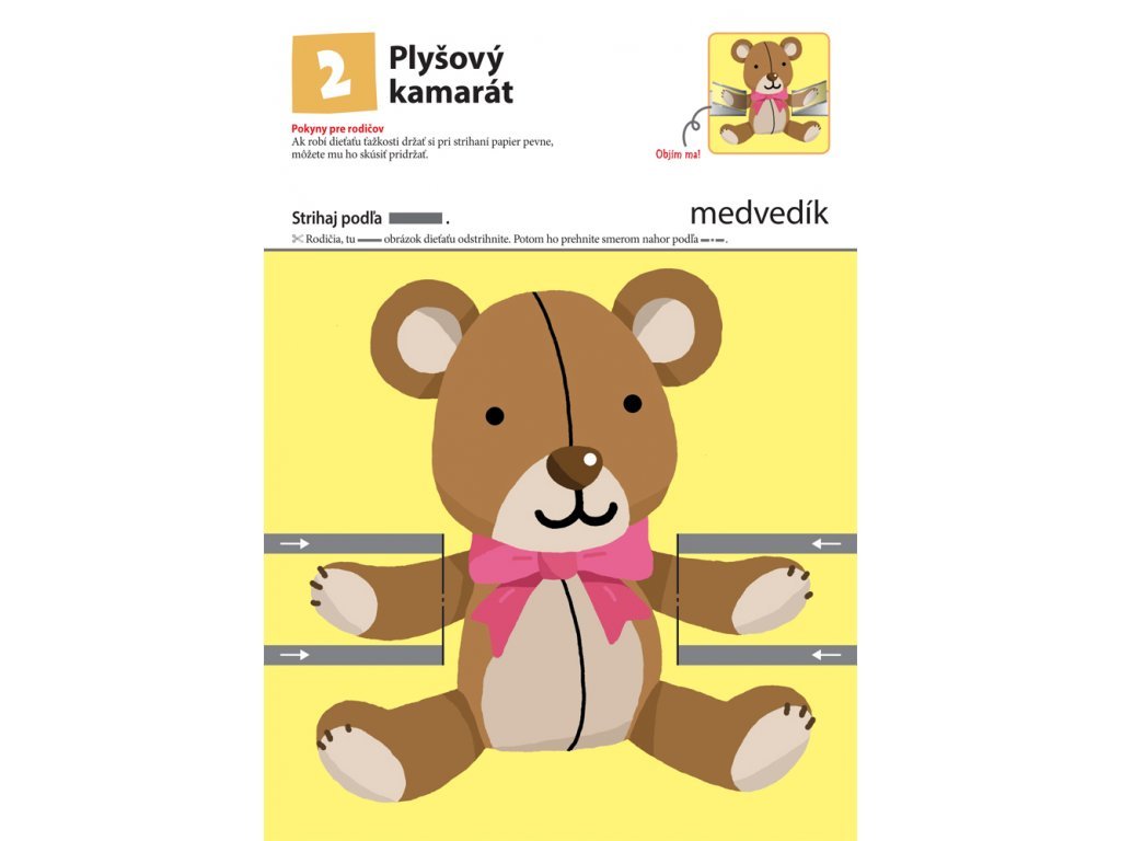 VIAC Strihaj papier! V tomto zošite si bude dieťa rozvíjať jemnú motoriku pri strihaní čiar a tvarov. Tento pracovný zošit je určený deťom, ktoré dokončili zošit Strihaj papier! Úroveň aktivít v tomto zošite je o niečo ťažšia ako pri aktivitách z predchádzajúceho zošita. Dieťa si posilní prsty ruky a bude zručnejšie a obratnejšie. To mu pomôže so správnym držaním a používaním ceruzky.Možno si myslíte, že nie je bezpečné dať deťom do ruky nožnice, ale už len z tohto dôvodu je veľmi dôležité naučiť ich, ako správne s nimi zaobchádzať. Cieľom tohto pracovného zošita je, aby sa dieťa zdokonalilo v práci s nožnicami a zlepšilo svoje motorické schopnosti. Ak dieťa vie zaobchádzať s nožnicami a strihá presne podľa vyznačených čiar, potom si už osvojilo základy práce s nimi. U malých detí sa ich schopnosť pracovať s nožnicami obvykle vyvíja postupne. Cvičenia v tomto zošite sú zostavené od jednoduchých aktivít k ťažším, takže dieťa postupuje ďalej až potom, keď ovláda predchádzajúcu úroveň danej zručnosti.Dodatočné parametre