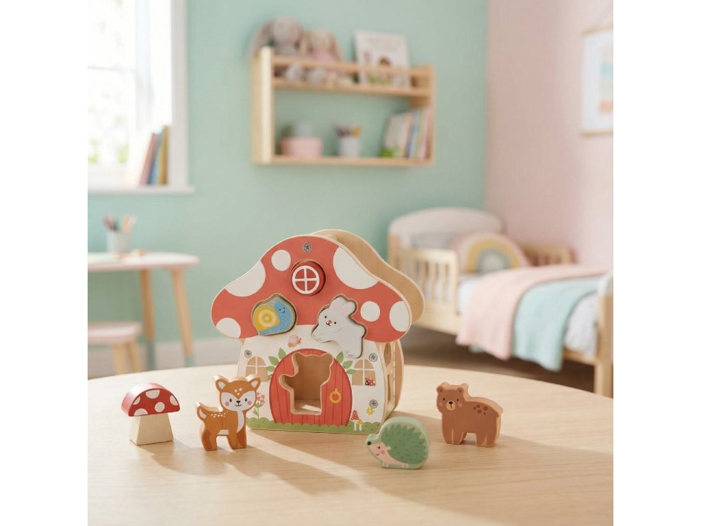 Vkladačka Tvary DomčekDrevená vkladačka Tvary Domček – učenie hrou pre najmenšíchObjavte kúzelnú drevenú vkladačku v tvare domčeka, ktorá v sebe spája zábavu, učenie a rozvoj detských schopností. Tento krásny domček s motívom huby obsahuje 12 farebných tvarov, ktoré deti vkladajú do správnych otvorov, čím si precvičujú logické myslenie, jemnú motoriku a koordináciu ruka–oko. Vďaka bezpečnému drevenému vyhotoveniu, jemným tvarom a atraktívnym farbám je hračka ideálna pre deti od 3 rokov. Podporuje učenie farieb, tvarov a rozvoj trpezlivosti a sústredenia. Skvelá voľba ako vzdelávacia hračka a zároveň krásny doplnok detskej izbičky. Hlavné vlastnosti: 13 dielov – domček + 12 vkladacích tvarov originálny dizajn hubového domčeka trénuje jemnú motoriku a logické myslenie podporuje učenie farieb a tvarov kvalitné drevené prevedenie s netoxickými farbami bezpečný certifikovaný produkt (INMetro – bezpečnostná norma) vhodné pre deti od 3 rokovPodporované zručnosti motorika prstov a rúk priestorové vnímanie rozpoznávanie farieb a tvarov trpezlivosť a sústredenie logické myslenie