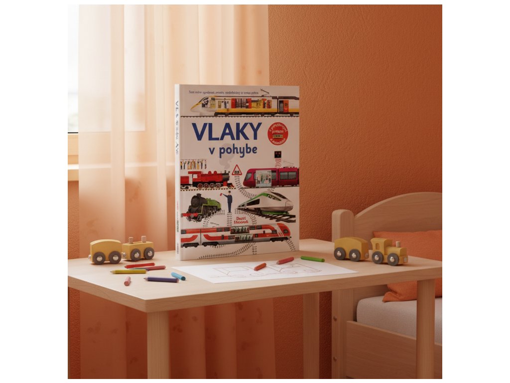 Vlaky v pohybeSvet vlakov v interaktívnej knihe s pohyblivými prvkami a rozkladacími súpravami. Preskúmaj fascinujúci svet vlakov vďaka tejto interaktívnej knihe plnej pohyblivých prvkov a okienok! Objav, ako fungovali parné lokomotívy alebo na akom princípe dnes jazdia moderné magnetické rýchlovlaky. Zisti, ako vlaky prekonávajú hory a rieky, ako vyzerá podzemné metro alebo čo všetko prepravujú nákladné súpravy. História aj súčasnosť vlakovej dopravy pre malých nadšencov.V knihe nájdeš 86 pohyblivých mechanizmov, vďaka ktorým môžeš vlaky posúvať, rozkladať alebo nahliadať dovnútra vagónov. Vydaj sa na cestu históriou aj súčasnosťou železníc - od dôb parných strojov až po najmodernejšie vlaky sveta.Dodatočné parametre