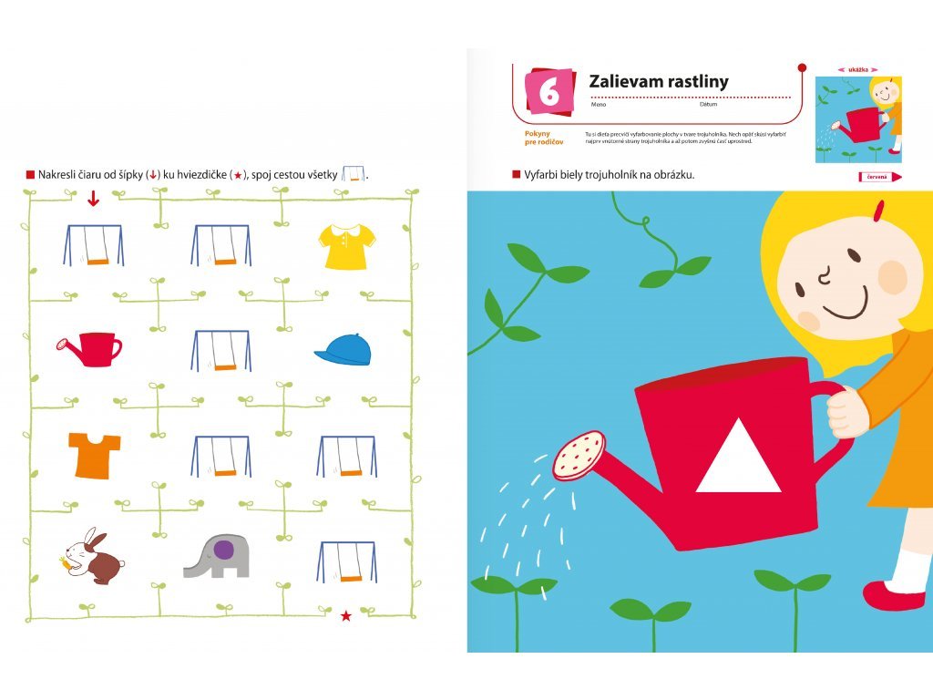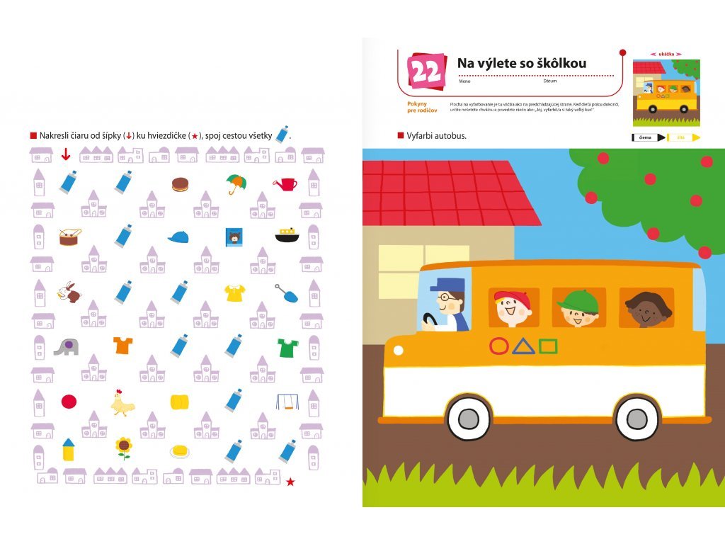Vyfarbovanie - Príprava do škôlky Pracovný zošit pripravuje dieťa na aktivity, ktorým sa bude venovať v škôlke. Je zameraný na správne držanie pasteliek, spoznávanie farieb a posilnenie si prstov rúk. Aktivity v tomto zošite u detí rozvíjajú schopnosť spoznávať farby a deti si pri nich posilnia aj prsty ruky a zlepšia svoju obratnosť pri práci s pastelkou - zručnosti potrebné na písanie písmen a číslic. Pomáha deťom v rozvoji jemnej motoriky. Najprv bude dieťa len čmárať, aby si užilo prácu s pastelkami a novými farbami. Následne si bude cvičiť výber pastelky správnej farby a vyfarbovanie určenej bielej plochy. Pri aktivitách, kde bude spájať zhodujúce sa obrázky, sa dieťa pocvičí aj v kreslení čiar. Postupne, ako bude dieťa pri práci s pastelkou čoraz obratnejšie, bude jeho vyfarbovanie úhľadnejšie a istejšie. Pri vyfarbovaní sa deti zábavným spôsobom naučia, ako správne držať a používať akékoľvek písacie náčinie.Dodatočné parametre