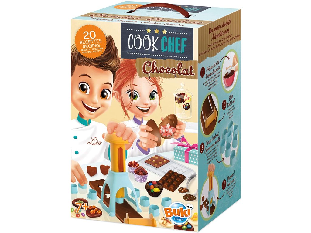 Unikátna sada pre všetky tvorivé deti, ktoré dokážu z čokolády vykúzliť symfóniu chuťových a zrakových vnemov. Balenie obsahuje príslušenstvo k výrobe čokoládových produktov (napr. lis, formy na čokoládky, tyčinky a paličky k výrobe čokoládových lízaniek a i.) a 20 receptov s detailným popisom, ako postupovať, aby ste sa dopracovali k želanému výsledku. Cieľom je pripraviť čokoládovú pastu, z ktorej sa v ďalšom kroku vytvárajú želané príchute a tvary!
