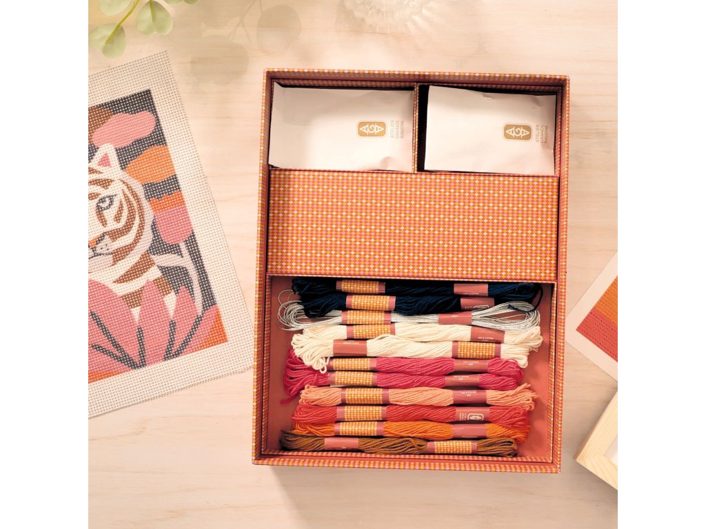 Vyšívanie na plátne Divá mačka Ateliér 64 Vytvor si divú mačku na plátne – vznikne obraz na zavesenieVyšívanie na plátne – Divá mačka (Atelier 64) je kreatívna sada, ktorá ťa prevedie technikou vyšívania na predtlačenom plátne. Do hotového motívu postupne vnášaš farby a štruktúru pomocou rôznych stehov – a sledovať, ako obraz ožíva „steh po stehu“, je príjemne návykové.Vďaka farebne potlačenému plátnu sa ľahko zorientuješ, kam ktorá niť patrí. Tvorenie je jemné, sústredené a zároveň veľmi upokojujúce – ideálne, keď chceš na chvíľu vypnúť. Po dokončení môžeš výtvor hrdo vystaviť v drevenom ráme, ktorý je súčasťou balenia.Pre koho je vhodná: odporúčaný vek: 15 – 99 rokovDôležité informácie rozmer plátna: 21 × 29 cm rozmer balenia: 24,5 × 31 × 5,5 cm kompletná sada so všetkým potrebným na tvorenieObsah balenia 1 farebne potlačené plátno na vyšívanie 8 farebných nití (každá 15 m) 2 ihly + navliekač nite 8 špendlíkov na upevnenie 1 drevený rám 1 šablóna na orientáciu návod + karta s prístupom k videonávoduDodatočné parametre