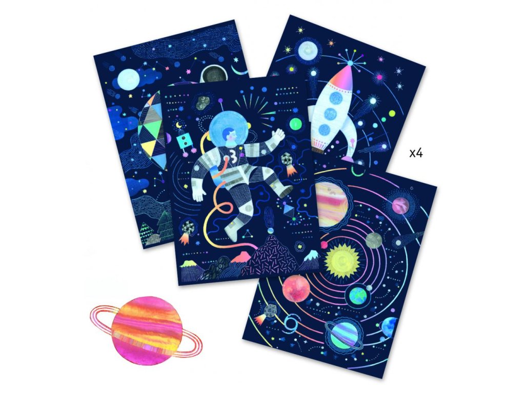 Prenes sa do vesmíru! 4 vyškrabovacie obrázky na tému vesmír s metalickým vzhľadom potešia každého malého astronauta.Deti si rozvíjajú trpezlivosť a jemnú motoriku. Vesmír ukrýva mnoho tajomstiev. Vezmi do ruky drevenú škrabku a vyprav sa za nimi umeleckou cestou. Počas trpezlivého vyškrabávania ťa bude sprevádzať obrázkový návod. Vďaka metalickému vzhľadu tvoje diela zažiaria. Obsah balenia: 4 vyškrabovacie obrázky, drevená škrabka, obrázkový návod.Dodatočné parametre