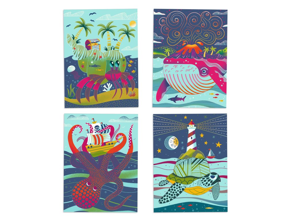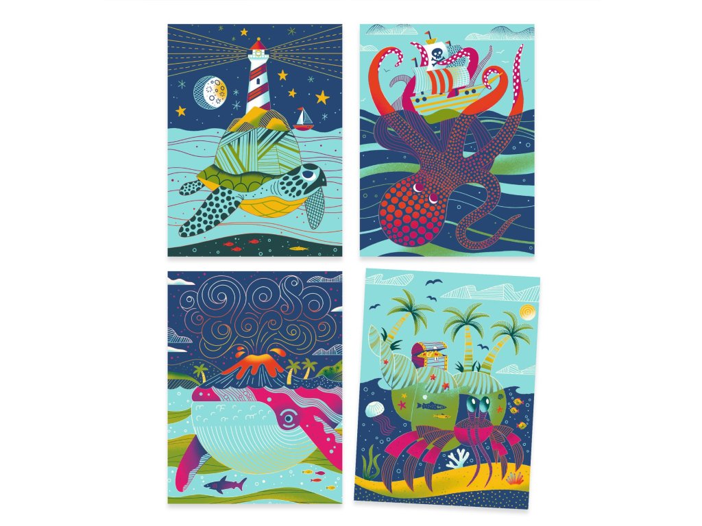 Vyškrabovacie obrázky: Pod hladinou (4 ks) Objavte podmorský svet plný farieb a skrytých prekvapeníPonorte sa do fascinujúceho sveta morských tvorov s kreatívnou sadou Vyškrabovacie obrázky: Pod hladinou od francúzskej značky Djeco. Táto originálna výtvarná aktivita nadchne všetky deti, ktoré milujú more, tajomné zákutia a prekvapivé farebné efekty. Pod tmavou vrstvou sa ukrývajú nádherné ilustrácie podmorského sveta, ktoré sa odhalia pri každom jemnom škrabnutí dreveným perom. Vyškrabovanie je pre deti nielen zábavné, ale aj upokojujúce. Ide o aktivitu, pri ktorej sa prirodzene sústredia, spomaľujú a ponoria do tvorivého procesu .Cvičenie jemnej motoriky aj sústredenia – hravou formouVyškrabovacie obrázky sú ideálnou aktivitou na rozvoj rôznych zručností. Deti si pri tvorení prirodzene precvičujú:jemnú motorikusústredenie a trpezlivosťvizuálne vnímaniekreatívne myslenieumelecké cítenieschopnosť dokončiť projektTento typ tvorenia je skvelý aj pre deti, ktoré potrebujú pokojné aktivity bez neporiadku. Vyškrabovanie je jednoduché a dá sa robiť doma aj v škôlke.Prečo si vybrať vyškrabovacie obrázky Pod hladinou od Djecokrásne ilustrácie podmorského sveta plné detailov a fariebjedinečný efekt odkrývania, ktorý deti okamžite zaujmekvalitné spracovanie a bezpečný drevený nástrojjasný a jednoduchý postup vhodný pre deti od 5 rokovskvelý kreatívny darček pre malých milovníkov prírody a tvoreniaObsah balenia4 vyškrabovacie obrázky s podmorským motívomdrevené vyškrabávacie peroobrázkový návodKaždý obrázok má iný motív a po vyškrabaní vytvára nádherný farebný kontrast.Dodatočné parametre