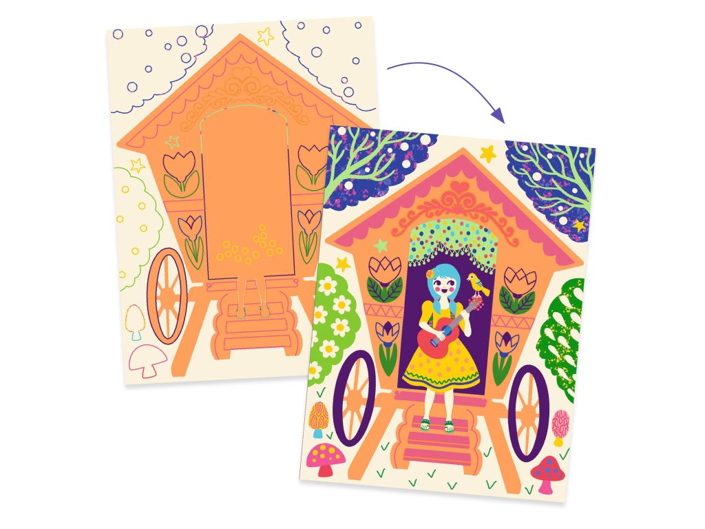 Vyškrabovacie obrázky: Prekvapivé príbytky (4 ks) Objavte magické príbytky ukryté pod farebnou vrstvouVyškrabovacie obrázky Prekvapivé príbytky od francúzskej značky Djeco zaujmú každé dieťa, ktoré má rado rozprávkové motívy a prekvapivé farebné efekty. Pomocou dreveného vyškrabávacieho pera deti odkrývajú pestré ilustrácie domčekov ukrytých v lese, v korunách stromov či v čarovných zákutiach. Táto tvorivá činnosť pomáha rozvíjať: jemnú motorikutrpezlivosťsústredenievizuálne vnímanieumelecké cítenieschopnosť dokončiť tvorivý projektDeti si výsledné obrázky môžu vystaviť, darovať alebo použiť ako dekoráciu do detskej izby.Prečo si vybrať vyškrabovacie obrázky od Djeco kvalitné spracovanie a originálne ilustrácie prekvapivých domčekovjedinečný efekt odkrývania fariebideálne do škôlky či na tvorivé popoludniajednoduchý postup vhodný už pre deti od 6 rokovkvalitné materiály a bezpečný drevený nástrojObsah balenia4 vyškrabovacie obrázky s motívom prekvapivých príbytkovdrevený vyškrabávací nástrojobrázkový návodFarebné vrstvy ukryté pod tmavou fóliou vytvárajú po vyškrabaní nádherný kontrast.Dodatočné parametre