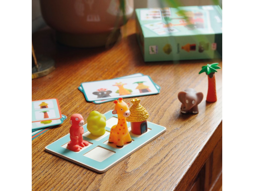 Vzdelávacia hra Spacio Trénuj priestor ako profík: vpredu, vzadu, vľavo aj vpravo na jednej doskeVzdelávacia hra Spacio je logická hra pre predškolákov, ktorá zábavne učí chápať polohu predmetov v priestore.Dieťa si vezme kartičku s úlohou a na drevenú hraciu dosku rozdelenú na 6 polí ukladá 6 figúrok tak, aby výsledok vyzeral presne ako na predlohe.Rýchly prehľad odporúčaný vek: 4–6 rokov rozvíja: priestorové vnímanie, orientáciu (vpredu/vzadu, vľavo/vpravo), pozornosť počet úloh: 20 kartičiek (riešenie na zadnej strane) v balení: drevená doska, 6 figúrok, 20 kariet s úlohamiPrečo si ju deti zamilujú je to „aha!“ hra – deti rýchlo pochopia perspektívu a priestorové vzťahy každá úloha je malá výzva, ktorá podporí sústredenie a vytrvalosť dieťa sa učí porovnávať detaily a umiestnenie: vpredu / vzadu / vedľa / vľavo / vpravo pevné spracovanie – drevená doska je ideálna na časté hranieAko sa s tým hrá Vyber si kartu s úlohou a pozri sa na rozmiestnenie figúrok. Ulož 6 figúrok na dosku tak, aby sedeli polohy aj poradie (kto je vpredu a kto vzadu). Skontroluj riešenie na zadnej strane karty a skúšaj ďalšiu výzvu.Obsah balenia 1× drevená hracia doska (6 polí) 6× figúrka 20× karta s úlohou (riešenie na rubovej strane)Technické parametre materiál: drevo (doska), plast/guma (figúrky) odporúčaný vek: 4–6 rokov rozmery balenia: približne 21,5 × 21,5 × 6 cm Tu nájdete návodDodatočné parametre