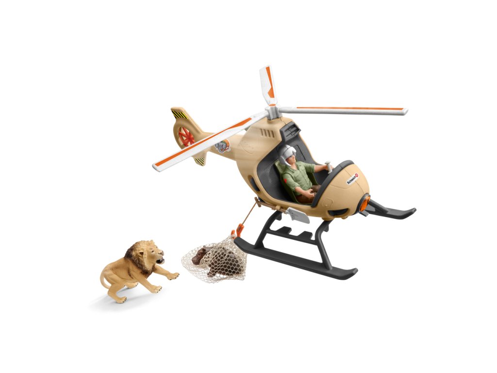 Hrošie mláďa je v nebezpečenstve. Dlhými krokmi sa už blíži vlk, ale správca parku je našťastie blízko so svojím vrtuľníkom. S novým záchranným vrtuľníkom od Schleich® Wild Life môže správca hrošie mláďa zachrániť z hlbokej roklie pred levom. Lanovým navijakom spustí správca parku z vrtuľníka prepravnú sieť. Mladý hroch v poslednej sekunde vylezie na sieť a správca parku levovi bleskovo odletí. Záchranná akcia sa podarila. Zábavný fakt: Hrošie mláďa je prepravené k Tomovi a Tedovi, ktorí ho prezrú v záchrannom voze. Funkcie: lanový navijak na prepravu nákladu, pohyblivé čepele rotora, správca parku má pohyblivé ruky a nohy, lopatka sa dá pripevniť na vrtuľník. Figurky Schleich® sú všetky modelované v najjemnejších detailoch, láskavo maľované a povzbudzujú deti, aby hrali a zároveň sa učili. Sada obsahuje: 1x lev, 1x hrošie mláďa, 1x správca parku, 1x helikoptéra, 1x prilba, 1x lanový navijak, 1x sieť, 1x lopatka. Rozmery balenia: 24 x 18 x 8 cm. Nevhodné pre deti do 3 rokov. Odporúčaný vek: 3-8Dodatočné parametre