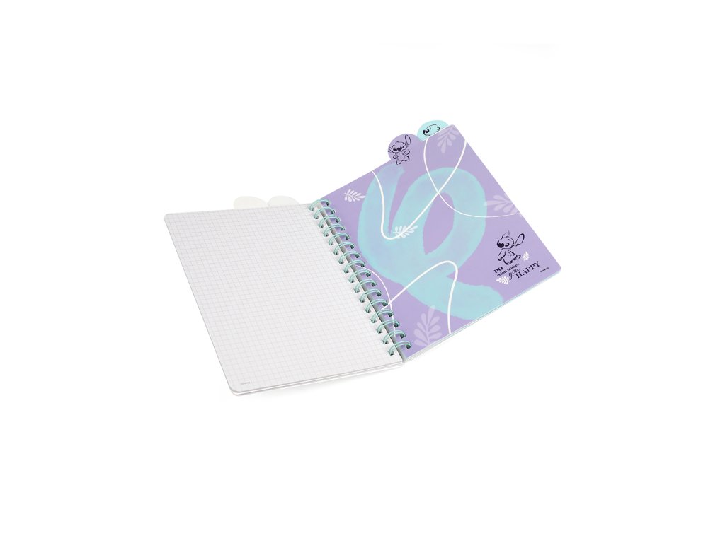 Zápisník špirálový A5 so záložkami Stitch Pastel Zápisník s dušou rozprávky Zápisník špirálový A5 so záložkami Stitch Pastel je dokonalý spoločník na každý deň – do školy, práce alebo na zapisovanie kreatívnych nápadov. Obsahuje 100 štvorčekových strán a záložky s jemnými Disney motívmi, ktoré dodajú tvojim poznámkam čaro. Kompaktný formát A5 sa zmestí do každej tašky, zatiaľ čo špirálová väzba a praktické záložky ti pomôžu udržať poriadok a prehľad. Dizajn inšpirovaný ikonickým Stitchom očarí každého milovníka Disney rozprávok.Dodatočné parametre