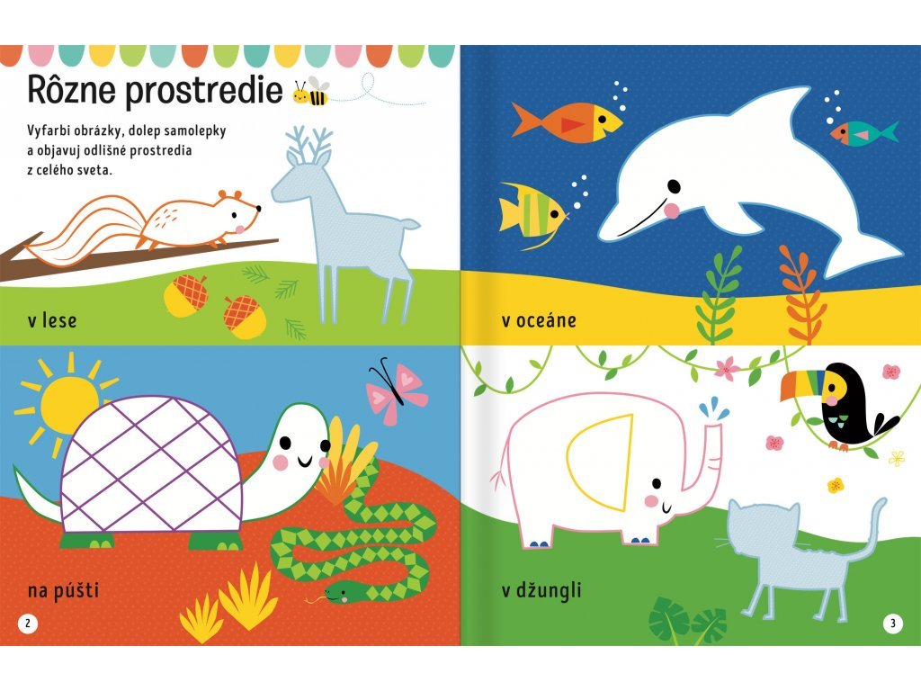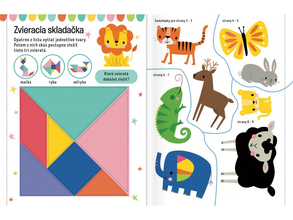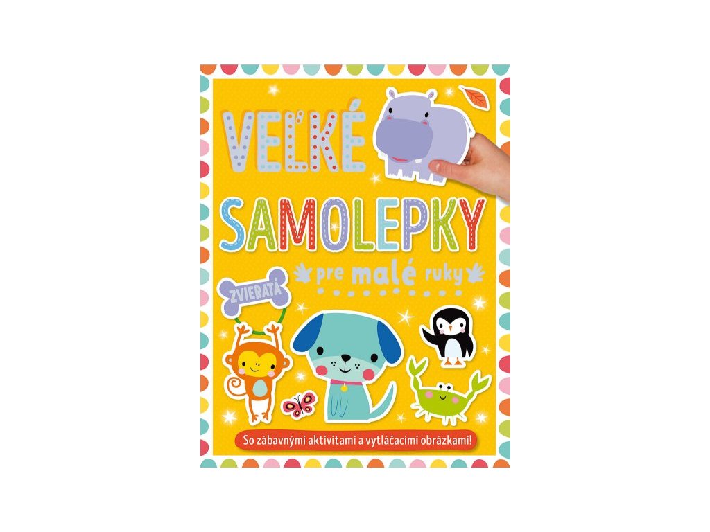 Zvieratá - Veľké samolepky pre malé ruky Poď sa pohrať so zvieratami z celého sveta v tejto prekrásnej knižke plnej aktivít! Kresli, vyfarbuj, dopĺňaj a nalepuj samolepky k aktivitám na každej stránke. Hor sa za dobrodružstvom so zvieratkami z celého sveta! V tejto knižke plnej aktivít a hier na teba čaká množstvo úloh a výziev. Spoj k sebe rôzne zvieracie protiklady, nalep správne názvy k jednotlivým zvieratám alebo si precvič písanie či počty s drobnými tvorčekmi. Dolepuj samolepky, vyfarbuj obrázky a dopĺňaj! Obsahuje množstvo aktivít so zvieratkami, ktoré rozvíjajú zručnosti. Tento zošit s roztomilými samolepkami a vytláčacou skladačkou a zvieracími šablónami ti zaručí plno zábavy!Dodatočné parametre