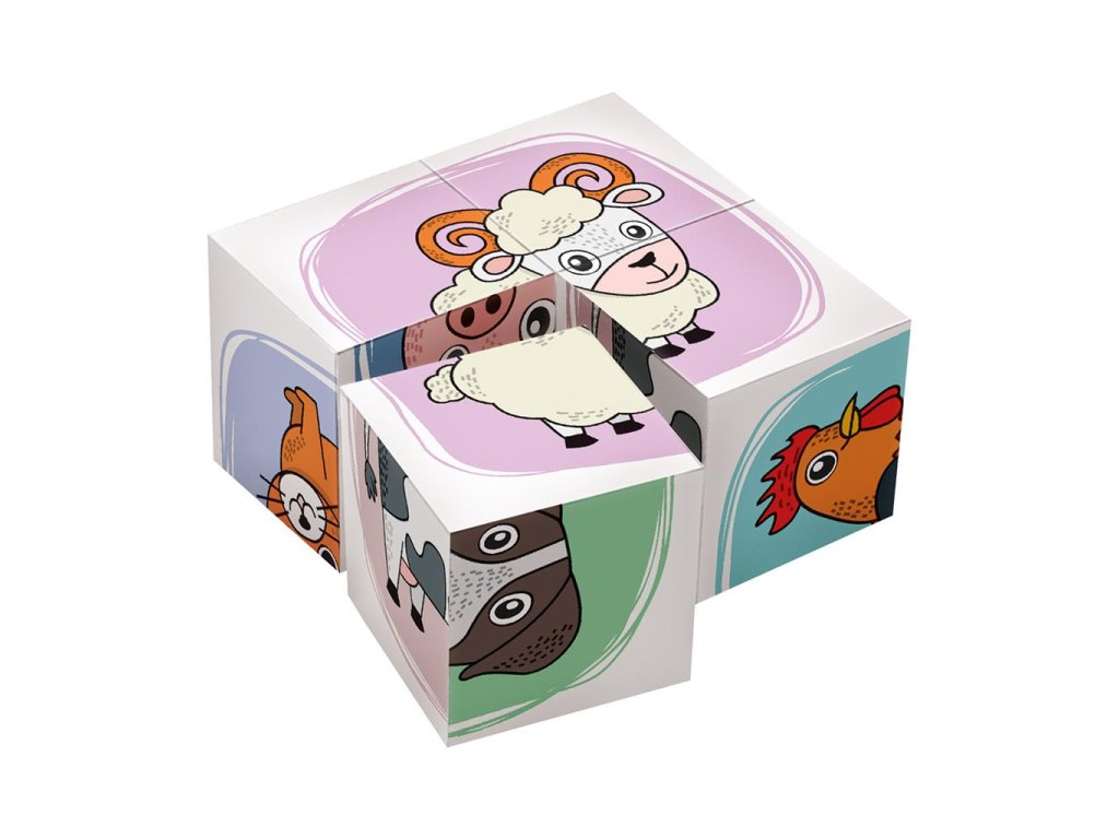 Detské drevené kocky, z ktorých je možné zostaviť 6 rôznych obrázkov. Balenie obsahuje 4 kocky. Vek: 3+Dodatočné parametre