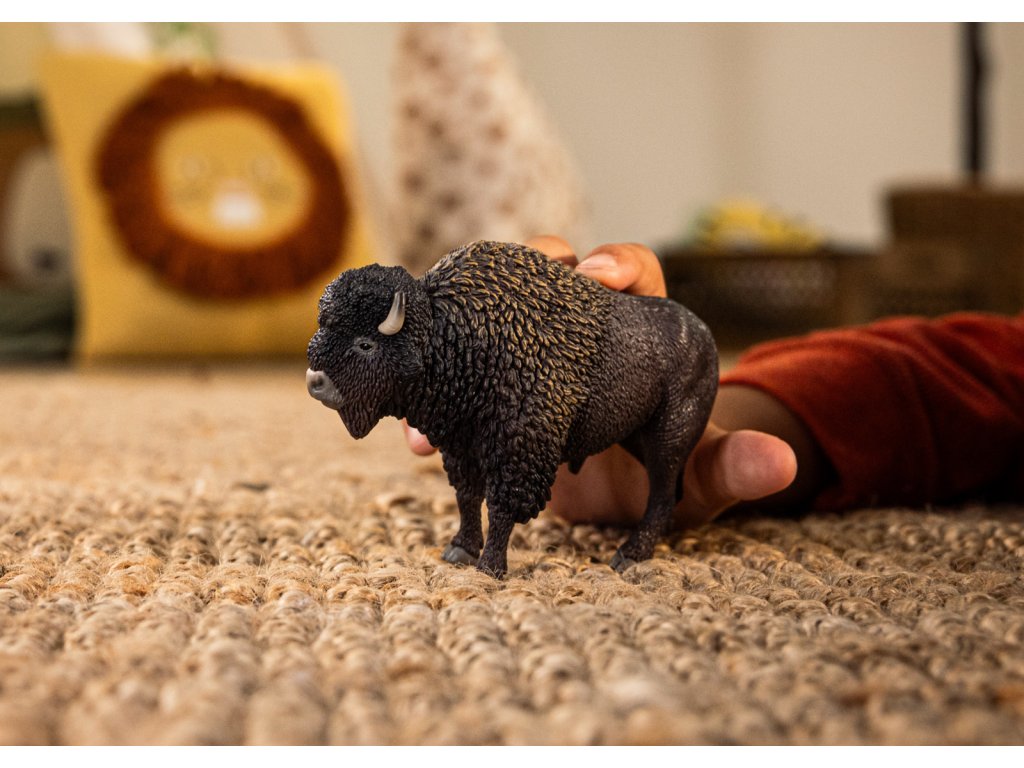 Bizon patrí do čeľade turovitých a je najväčším cicavcom Severnej Ameriky. Bizony sú veľmi svižné a dokážu vyvinúť rýchlosť až 56 kilometrov za hodinu. Majú tak hustú srsť, že extrémne vonkajšie teploty nemajú vplyv na ich telesnú teplotu. Hustú hnedú srsť má na chrbte svetlejšiu a hustšiu. Jeho silná hlava a široká hruď sú sfarbené načierno. Bizon má na hlave dva krátke rohy, ale v skutočnosti vyzerá veľmi priateľsky. Bizon je najväčší cicavec Severnej Ameriky a tento samec je obzvlášť krásny. Sebaisto stojí na silných nohách na sviežej lúke a pomaly sa pasie. Zrazu zdvihne hlavu. Zbadal snáď niečo? Bizon otočí veľkú hlavu na stranu a obzrie sa po širokej pláni. Nič tam nie je. Ďalej sa pasie. Tento veľký chlapík je celkom pokojný. Ale keď musí, dokáže odvážne brániť seba aj svoje stádo. Akonáhle naberie rýchlosť, rúti sa na protivníka ako lavína. To sa našťastie stáva len vo výnimočných prípadoch. Tento výrobok Schleich® patrí do tematického sveta WILD LIFE a je vhodný pre deti od 3 rokov. Rozmery figurky: 8,4 x 4 x 13 cm.Dodatočné parametre