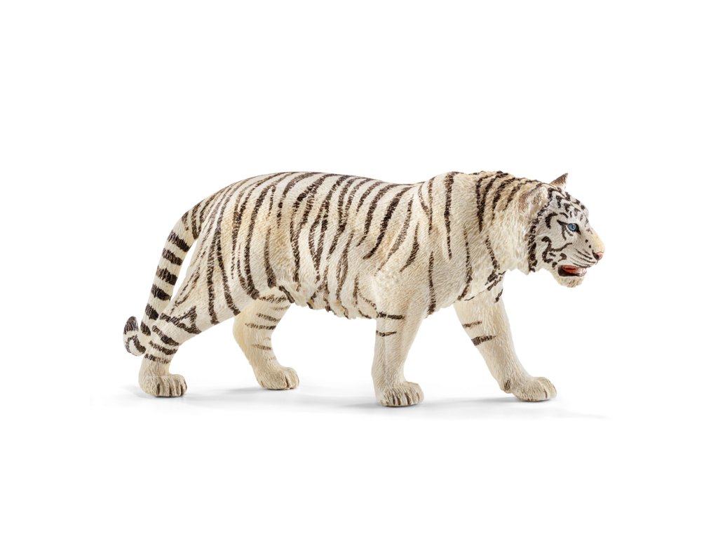 Biele tigre patria k „nepravým albínom“. Praví albíni majú červené oči, biele tigre ich však majú modré. Krása bielych tigrov je dychberúca. Majú snehovo bielu srsť a silné, modro sa trblietajúce oči. Od normálnych tigrov sa odlišujú tým, že ich srsť, koža a oči nemôžu tvoriť žiadne červené a žlté farbivá. Nie sú to však albíni, pretože tí majú vždy červené oči. Biele tigre žijú väčšinou v zoo, pretože vo voľnej prírode by nemali veľa šancí na prežitie. Keďže srsti chýba krytie, obete by ich rýchlo spozorovali a včas by si našli úkryt. Z 10 000 tíbrích mláďat je len jedno jediné biele. Rozmer: 13 x 6 x 3 cm. Nevhodné pre deti do 3 rokov. Odporúčaný vek: 3-8Dodatočné parametre